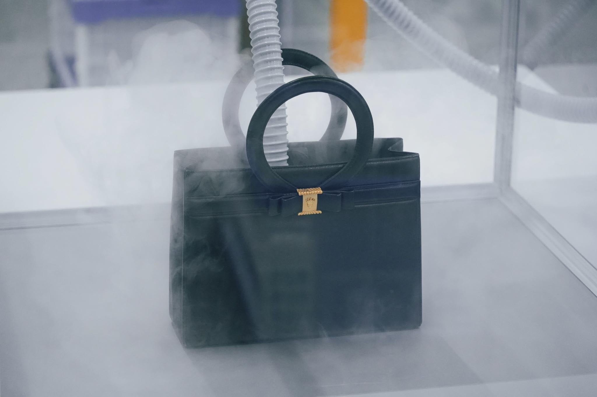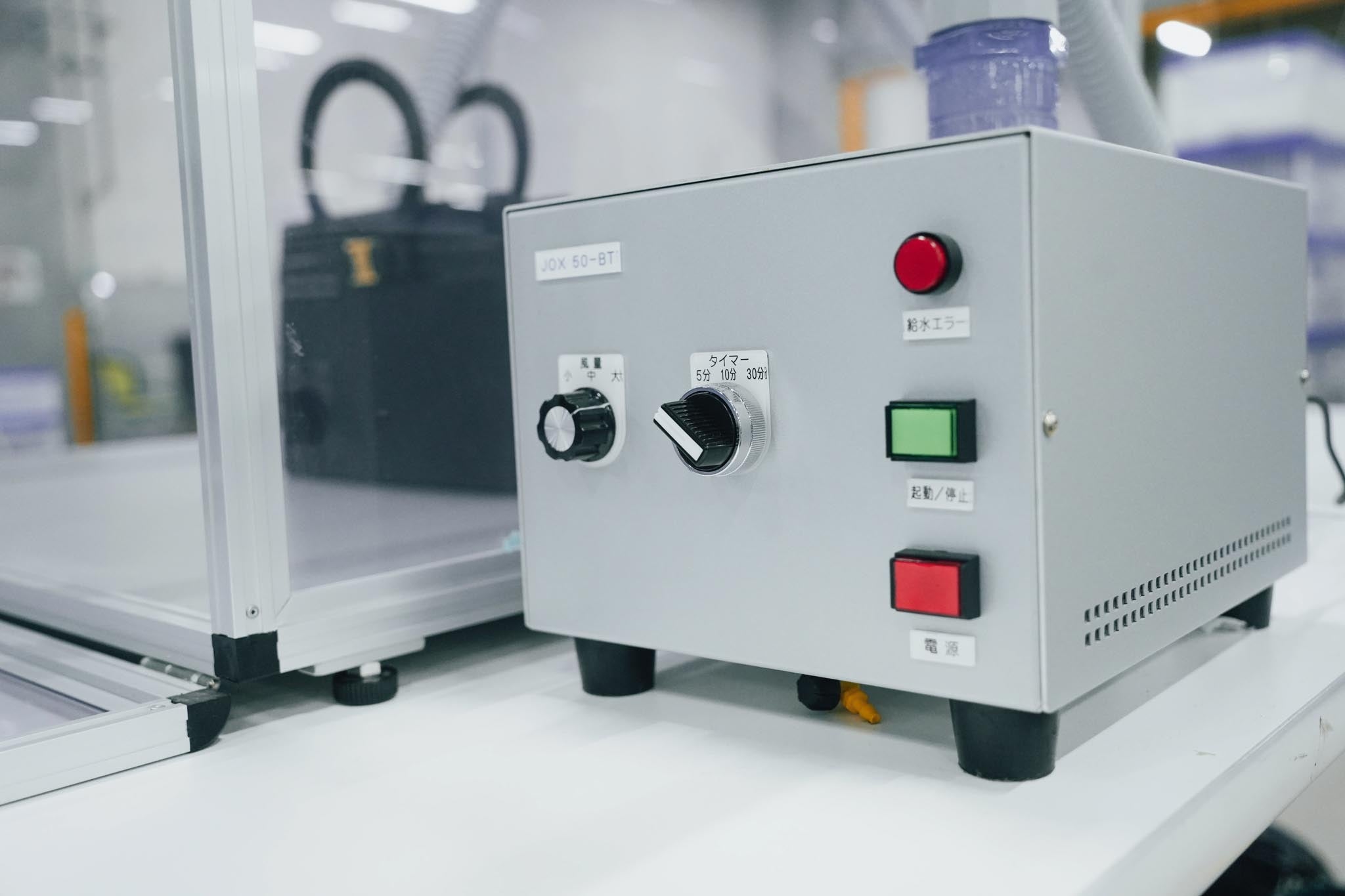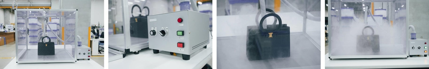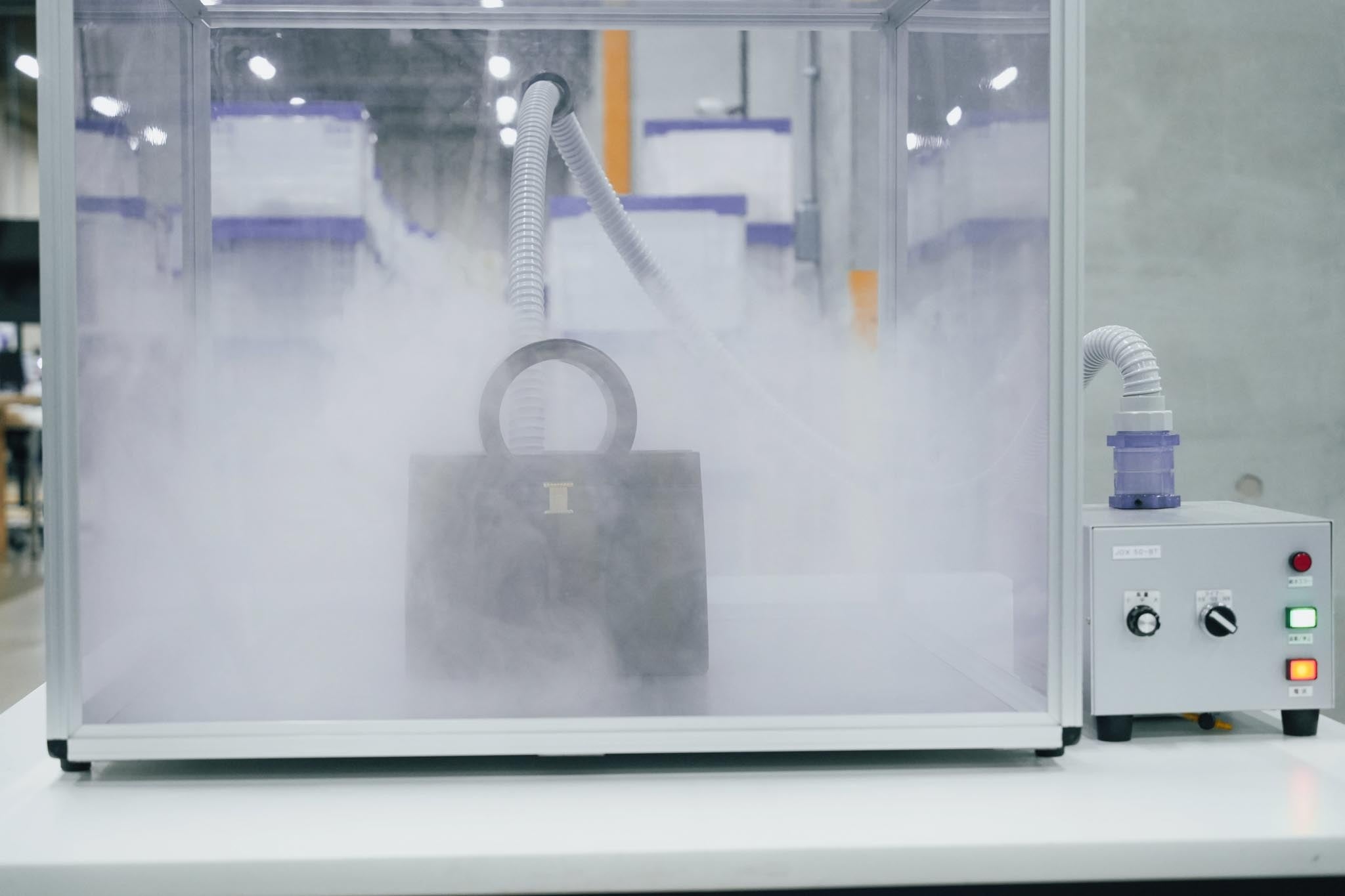 アクリルケース内にMA-T®を充満させ、商品に約10〜30分間噴霧することで消臭を行います