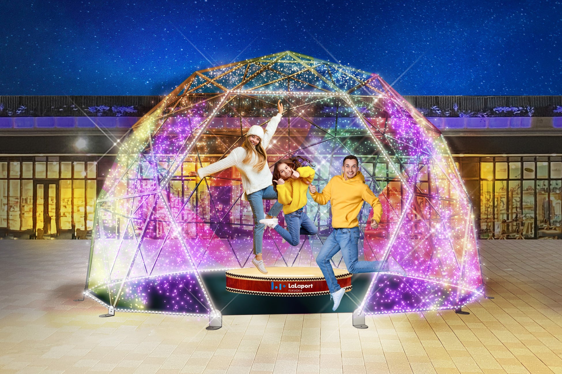 ご来館のみなさまの憩いの場所として人気のオーバルパークに体験型のデコレーションが登場します。ドーム型のデコレーションの中央には太鼓をモチーフにしたステージをご用意。ステージに立つと光が変化するとともに音の演出がにぎやかに盛り立てます。