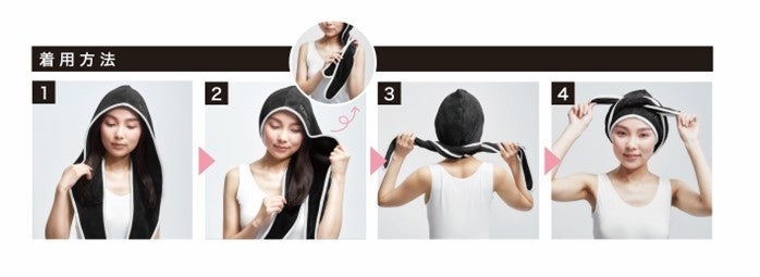 1 フードと頭の中心を合わせてかぶります。