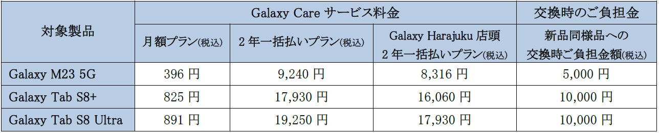 ※Galaxy Careの料金は予告なしに変更となる場合がございます。