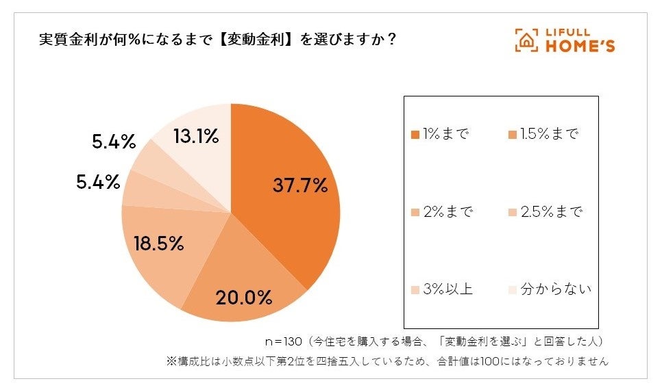 変動金利を選ぶ実質金利の上限は「1%」が37.7%と最多。