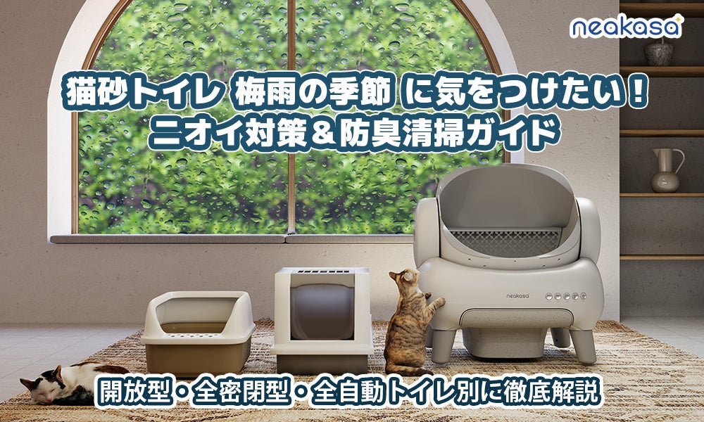 Neakasa(ネアカサ)は、梅雨時に気になる「猫トイレのニオイ問題」に対処するため、トイレタイプ別に効果的な防臭・清掃方法をご紹介します。