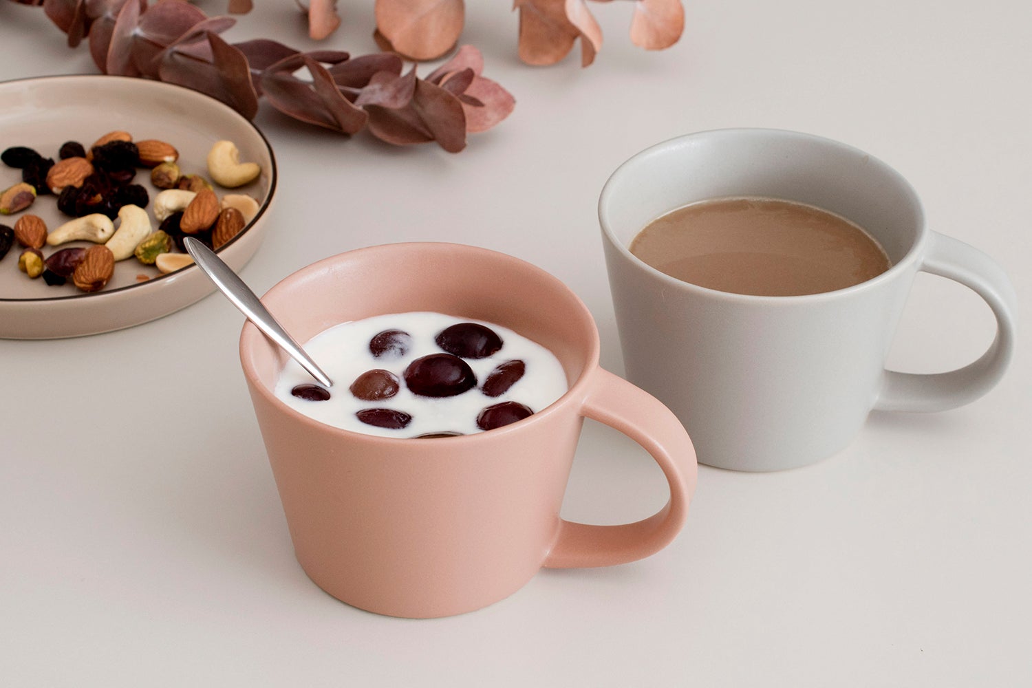 口が広く背が低い形なので、飲み物だけでなくヨーグルトカップやスープマグとして