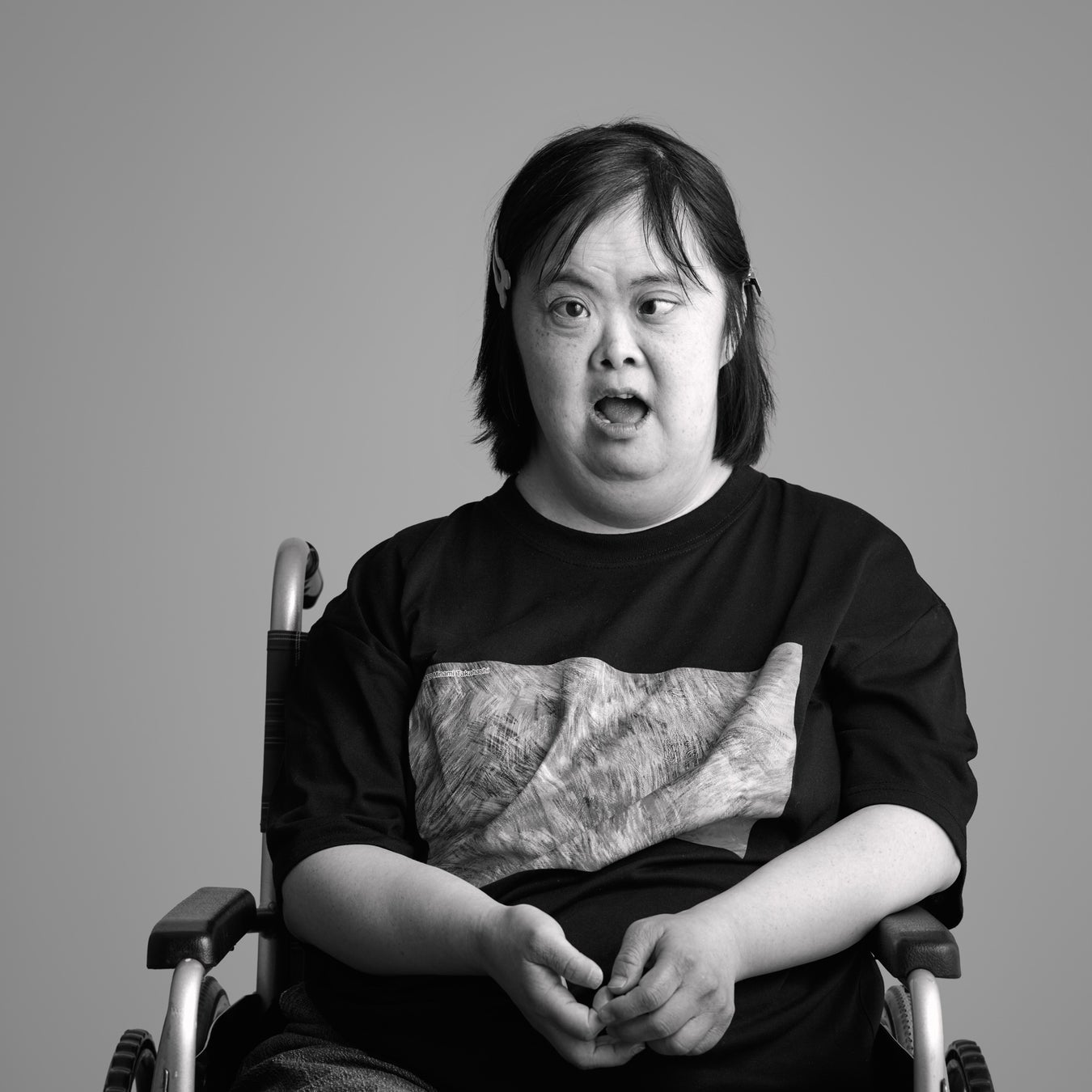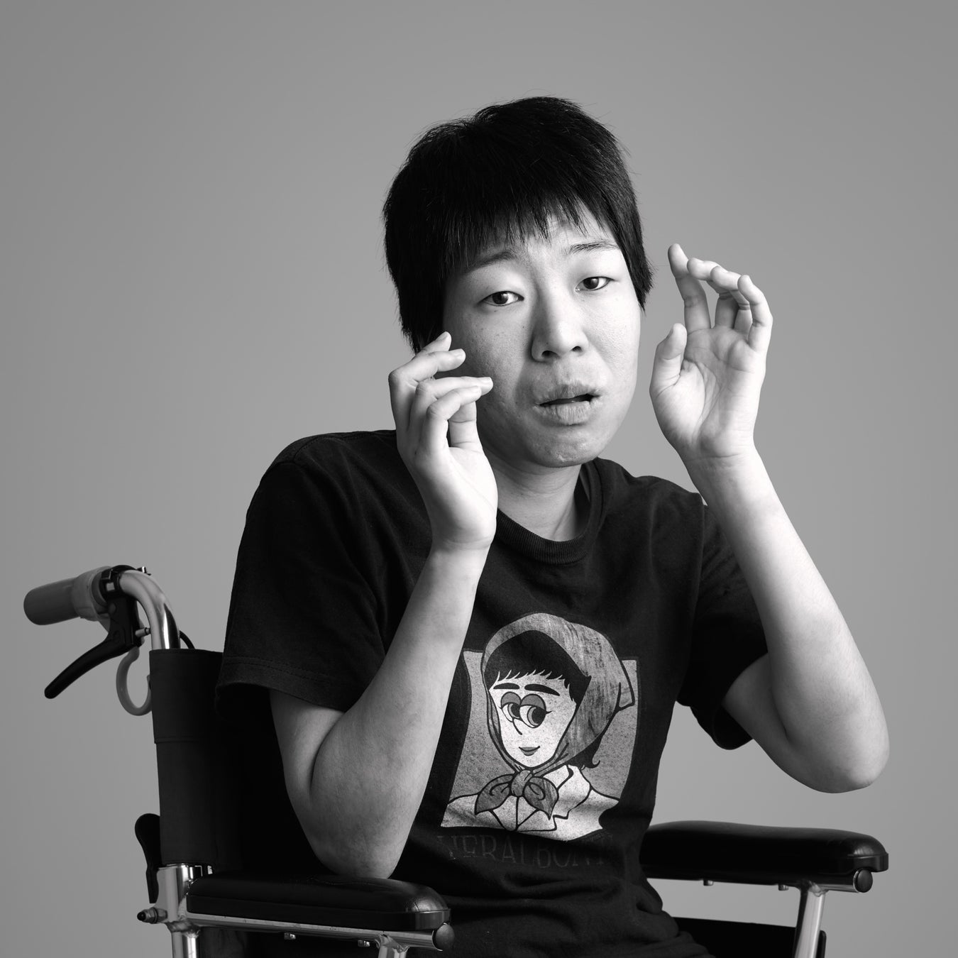養護学校の中等部に在学中、あらゆる文字を独自のルールで変形させて書くようになる。はじめは周囲も困惑し、直そうと苦心したが、やがて複数の教諭らがその文字を彼の独創的な「造形表現」として捉え、積極的に制作を支えたことで、彼の表現は多くの人に喜びを与えるアートとして羽ばたき始めた。好きな音楽家はビリー・ジョエル、スピッツ、井上陽水。背中を掻いてもらうというやり取りを通して他者とコミュニケーションを図ろうとする。