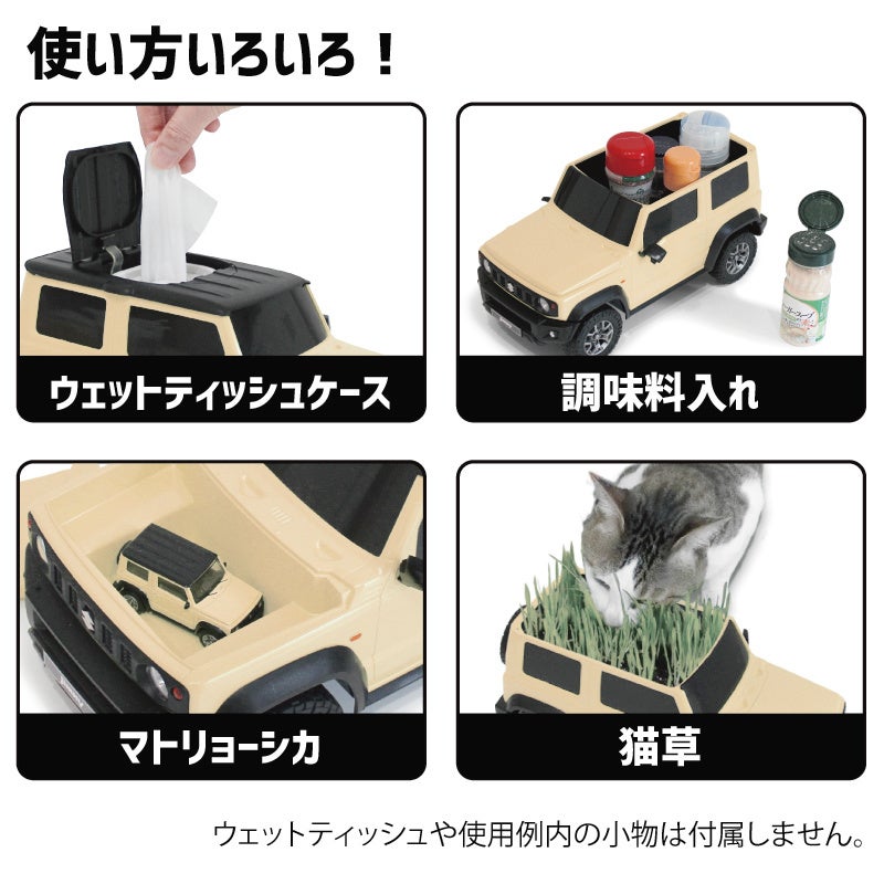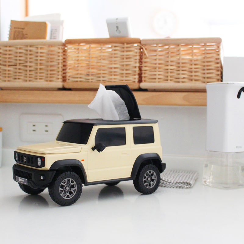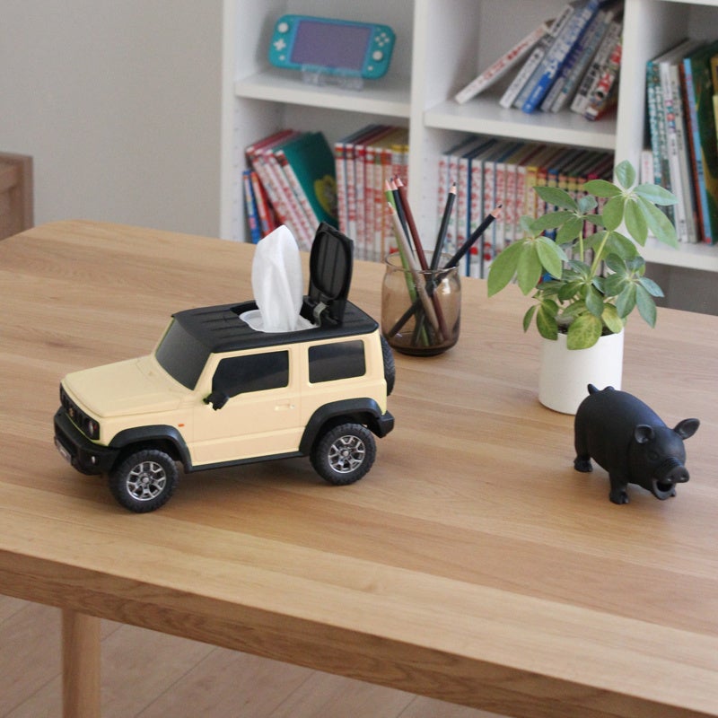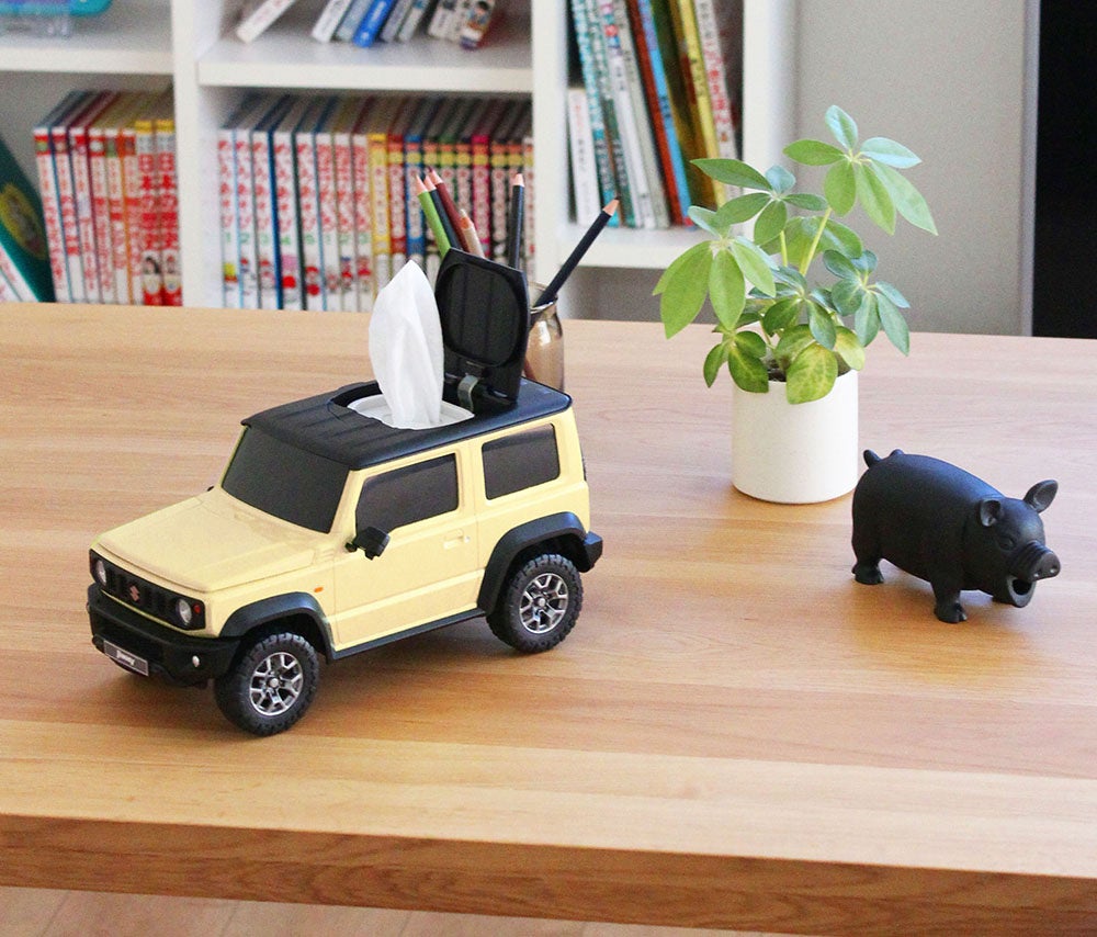 株式会社フェイス(石川県)が企画販売する、スズキの人気車「ジムニー」と「ジムニー シエラ」のウェットティッシュケース。約1/12のスケールで、ミニカーのような見た目をしたウェットティッシュケースは、ジムニーファンの中で話題のアイテム。細部までディティールにこだわったウェットティッシュケースは、小物入れやリモコンラックとしても使用でき、インテリアアイテムとしても人気が集まっている。