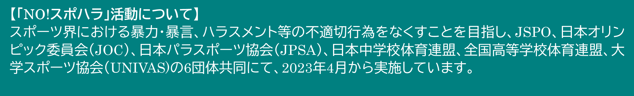 JSPOはじめとする本活動の主催6団体は、「NO!スポハラ」の価値観を広げるため、2023年度、さまざまな取り組みを行ってきました。