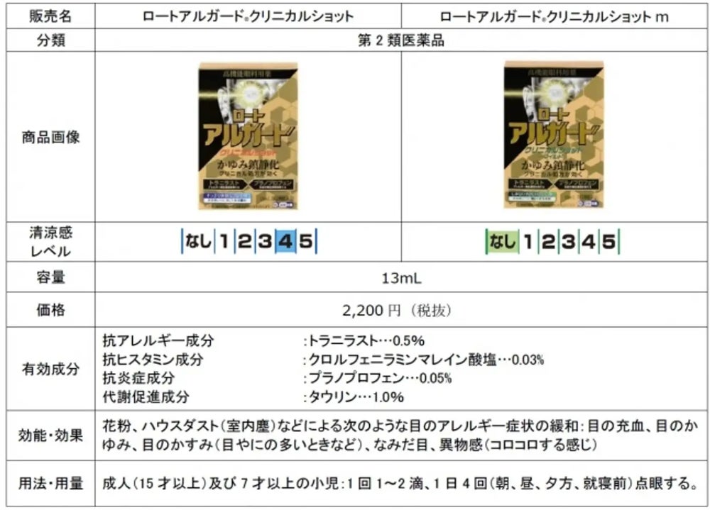「ロートアルガードクリニカルショット」(第2類医薬品)は、花粉などによるつらい目のかゆみ・充血・異物感の全てにクリニカル処方が効く、高機能眼科用薬です。