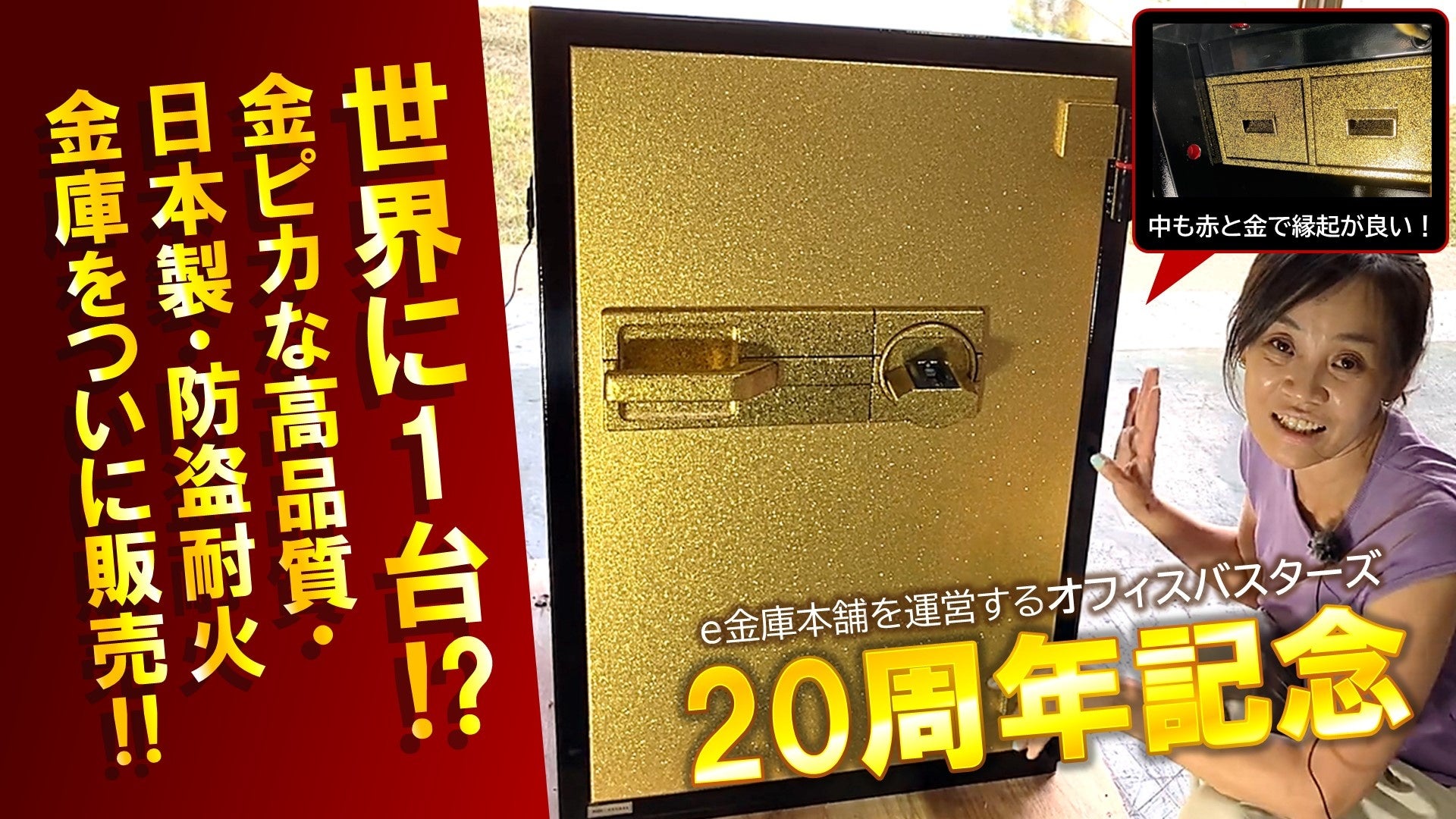 金庫専門販売サイト「e金庫本舗」を運営する株式会社オフィスバスターズ(東京都中央区 代表取締役社長 熊谷正慶 以下当社)が、この度設立20周年を迎えました! そこで今回は、20周年を記念して、世界に1台!?※1。なんとあまりにも縁起の良い「金ピカ」カラーの純国産・静脈認証錠・防盗耐火を特別に1台のみ!本年7月18日(火)10時から受付販売をスタートします。