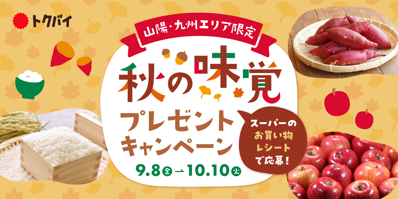 トクバイ、9月8日から「山陽・九州エリア限定!秋のスーパーマーケット お買い物応援レシート応募キャンペーン」を開催
