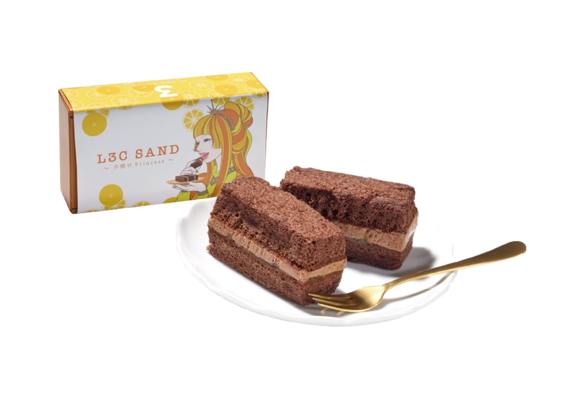 香りを消さないように皮ごと刻んだオレンジピューレとチョコクリームを、国産米粉を使用したしっとりふわふわのショコラスポンジで挟んだケーキ。みかんをあしらった可愛らしいデザインのパッケージにも注目。
