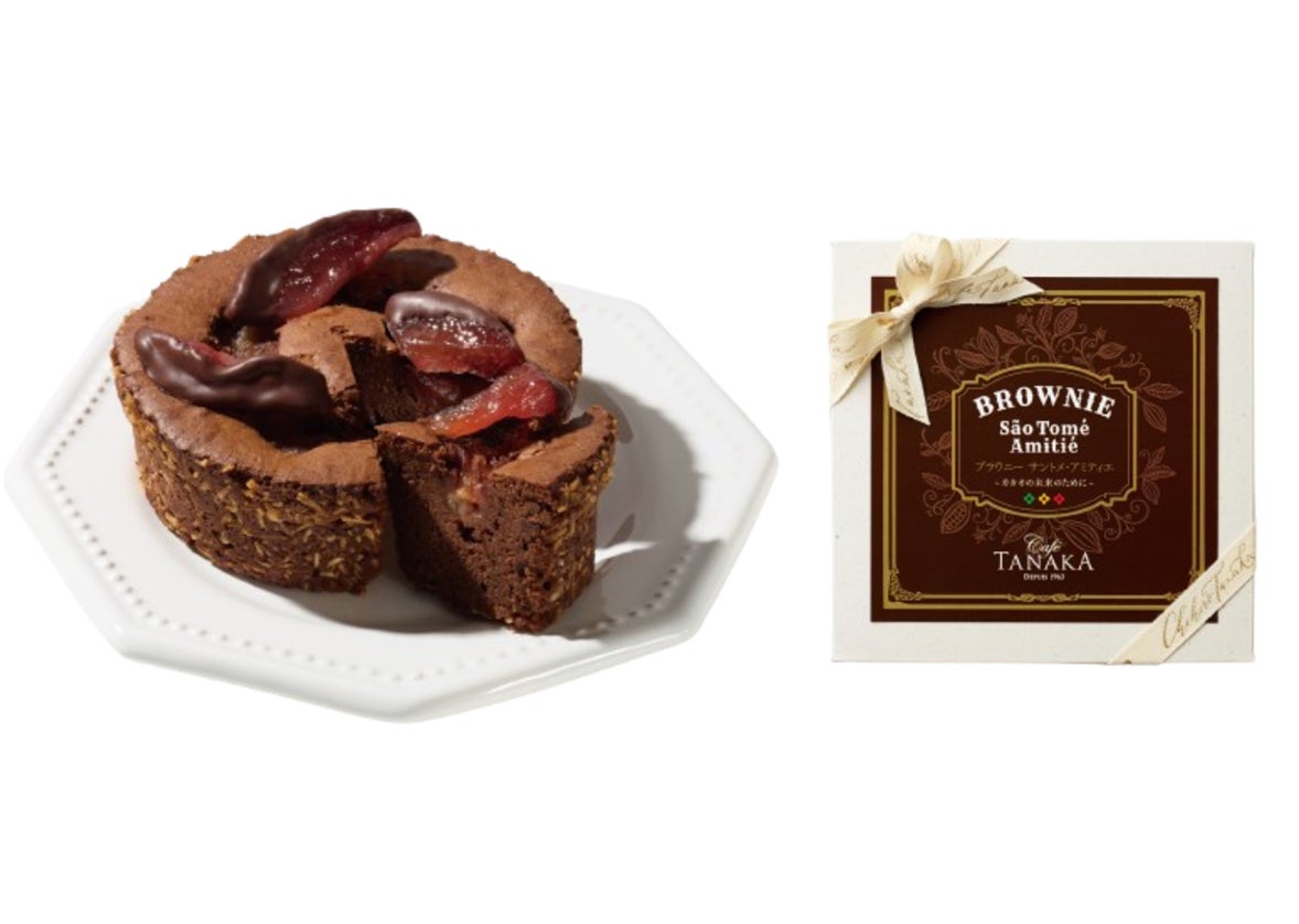 アフリカ・サントメ島に自社管理農園を持ち、現地の女性雇用支援に取り組む田中シェフ。サントメの女性たちと作ったブラウニーに学生達の多数決のもと決まった2つの素材を合わせ再構築した特別な一品。パッケージも学生が考案(小野さんデザイン採用)