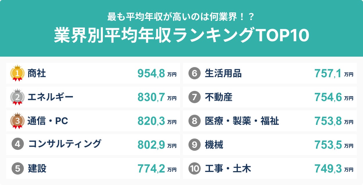 最も平均年収が高いのは何業界!?業界別平均年収ランキングTOP10を発表!/SalesNow DBレポート