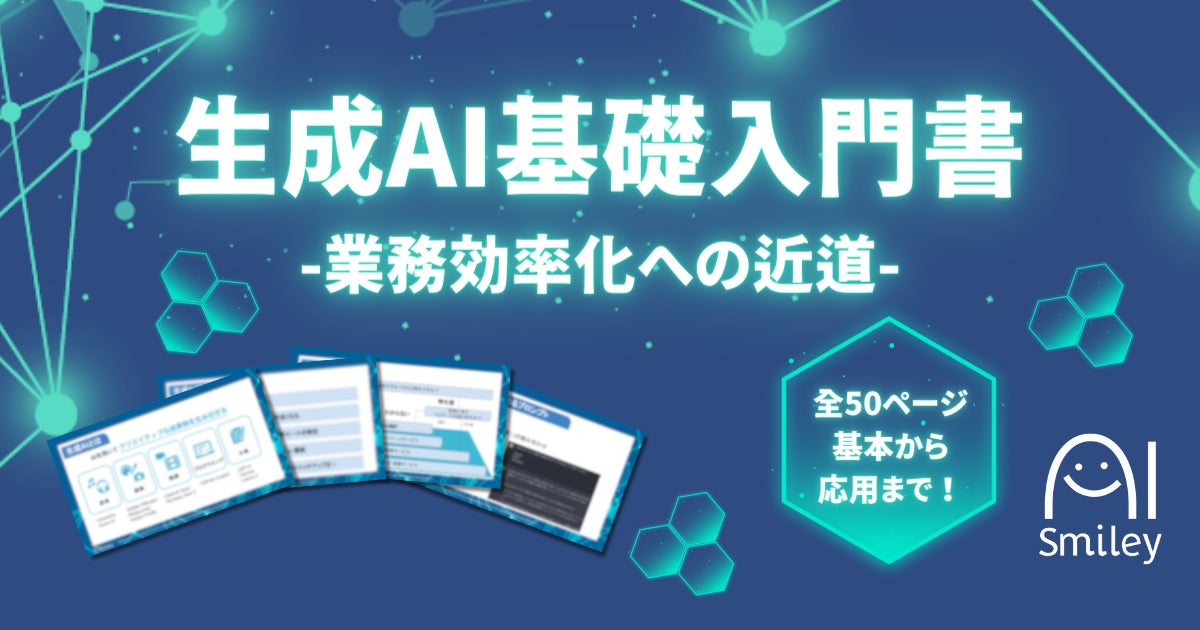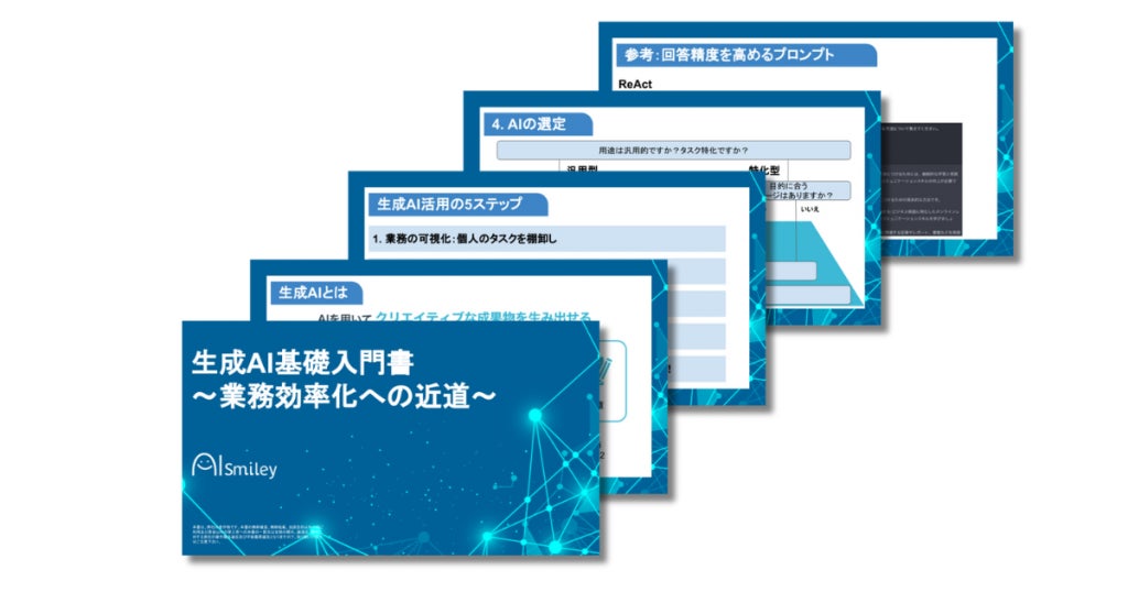 国内最大級のAIポータルメディア「AIsmiley」を運営する株式会社アイスマイリー(東京都渋谷区、代表取締役:板羽晃司)は、各業界のDX推進の支援の一環として生成AIに関する基礎知識および導入をまとめた「生成AI基礎入門書」を2024年3月22日(金)に公開しました。