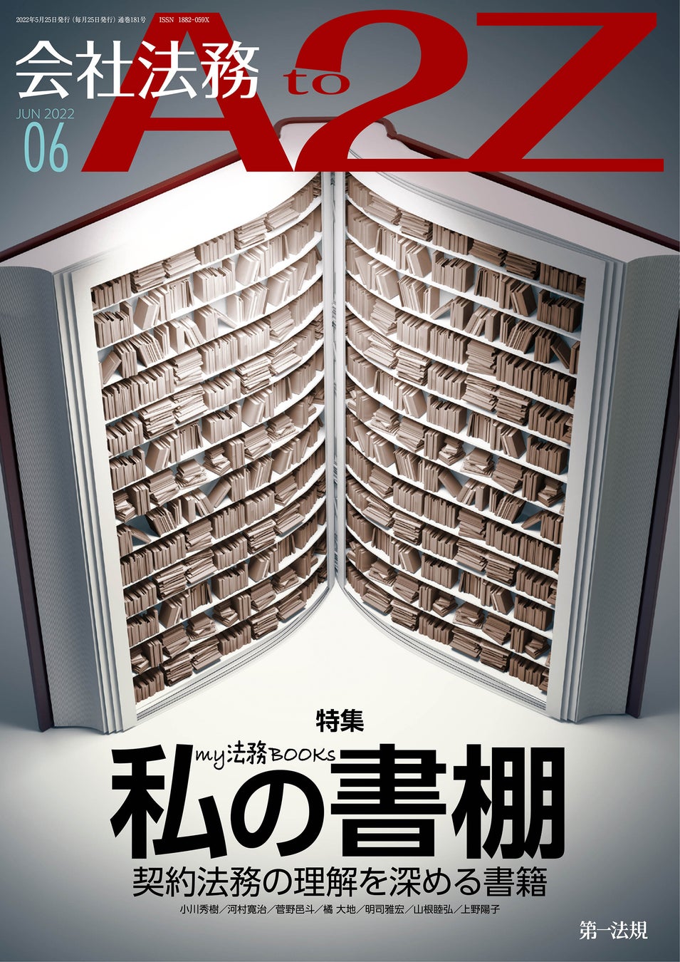 【会社法務A2Z】最新の企業トレンドや法改正情報の解説を毎月お届け!2022年6月号では「my法務Books 私の書棚 契約法務の理解を深める書籍」を特集