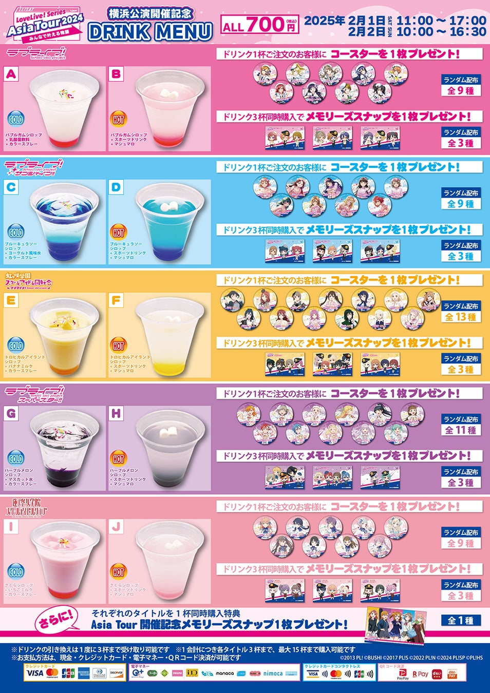 各グループをイメージした全10種類のドリンクや、アジアツアー仕様のメモリーズスナップもご用意しております!