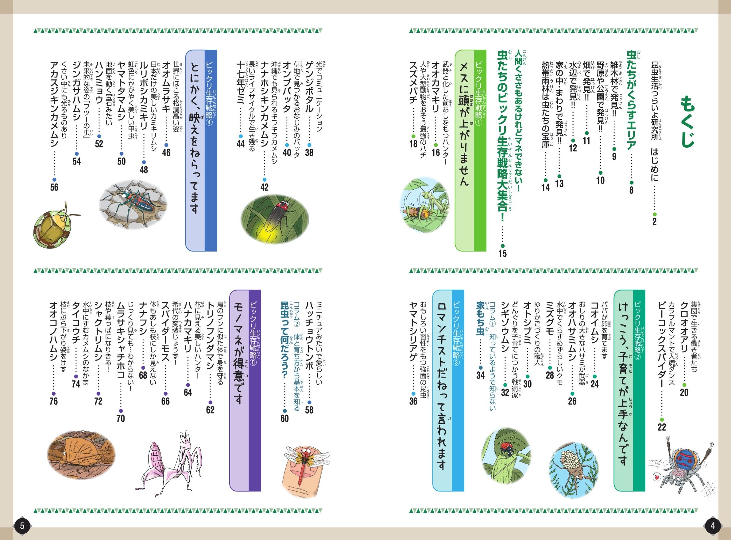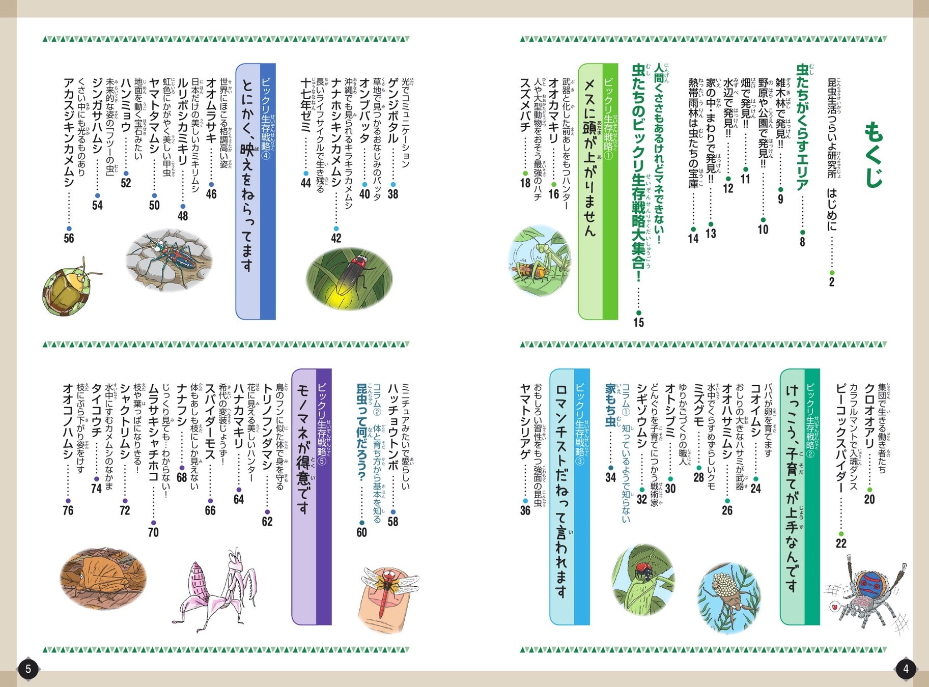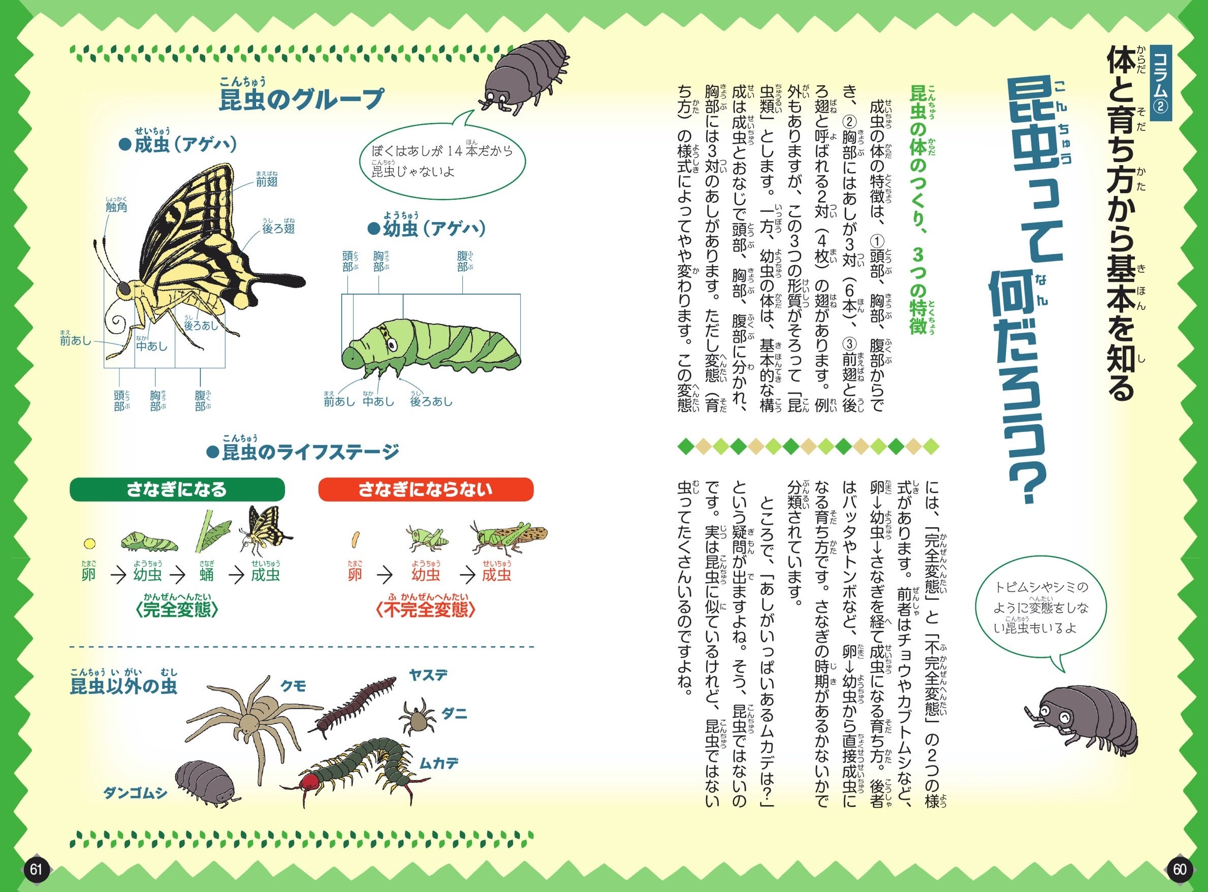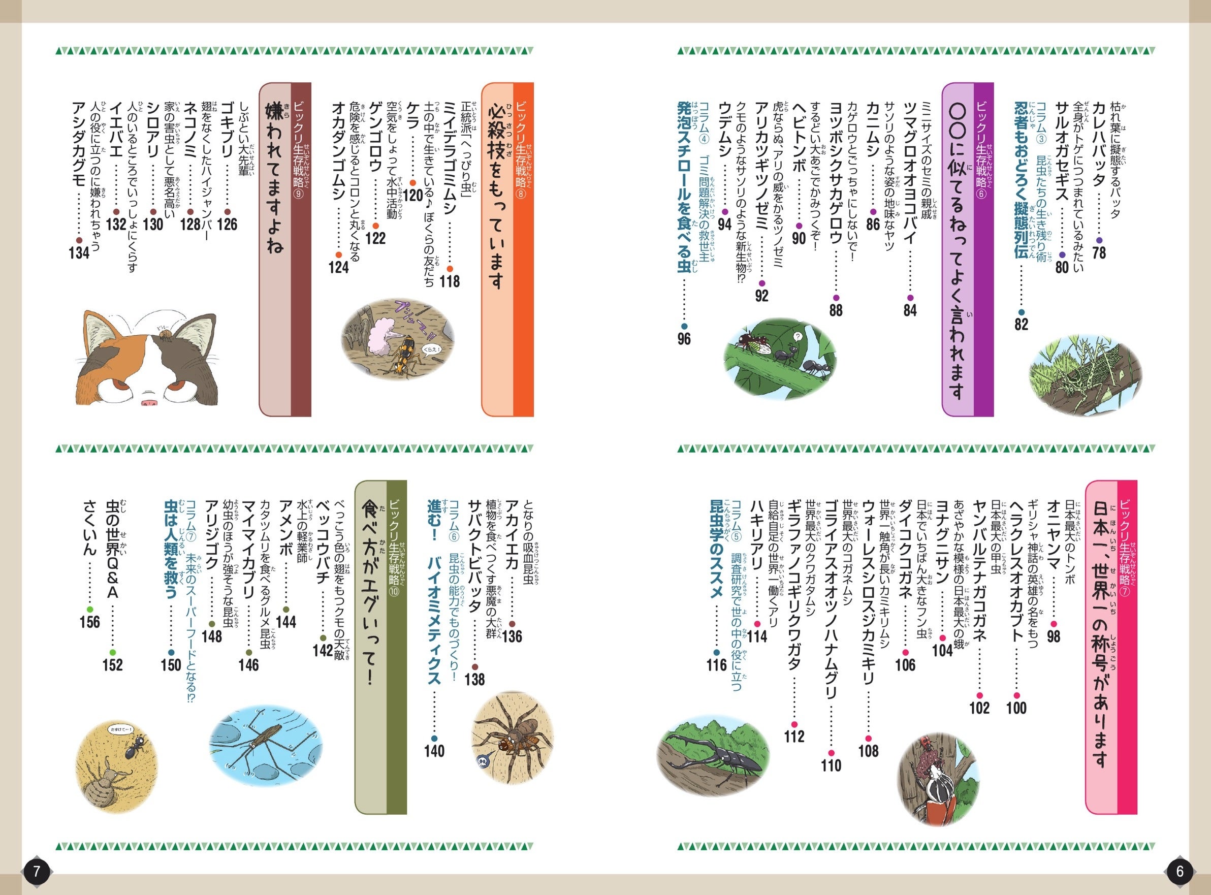 コラムには、昆虫の生態をヒントにした科学技術の応用「バイオミメティクス」や、昆虫食、ゴミ問題を解決する虫の話など、人間と昆虫との関わりを深掘りしたテーマをもうけています。