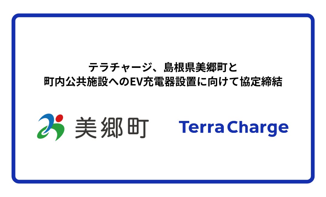 テラチャージ、島根県美郷町と町内公共施設へのEV充電器設置に向けて協定締結