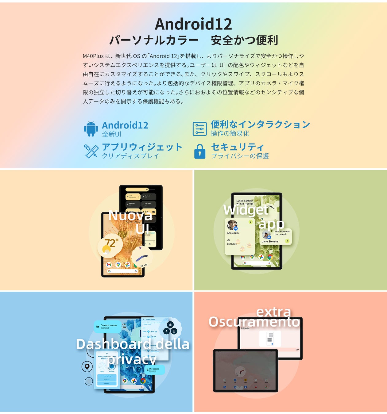 Android 12を搭載し、よりパーソナライズで安全かつ操作しやすいシステムエクスペリエンスを提供でき、UIの配色やウィジェットなどを自由自在にカスタマイズすることも実現できます。最大7000mAhの大容量なリチウムイオンバッテリと低消費電力プロセッサーを搭載しています。最大8時間のビデオライフを実現、プラスとマイナスを問わないType-Cポートでより手軽に充電できます。
