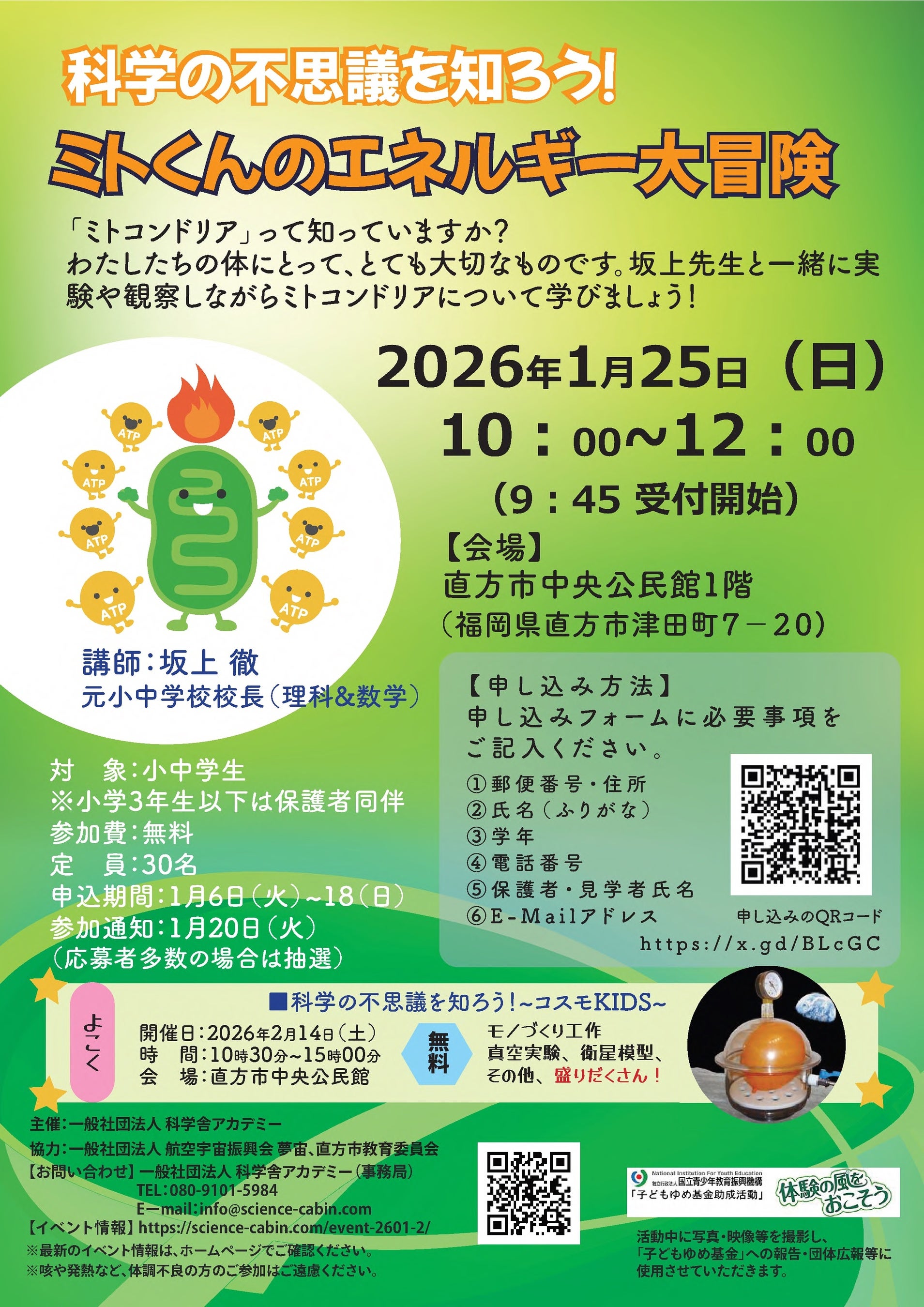 〈協力〉一般社団法人 航空宇宙振興会 夢宙、直方市教育委員会
