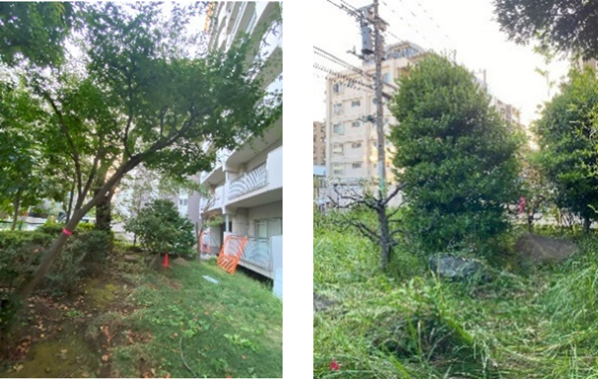 現地の既存樹であるモチノキ、イロハモミジを移設し新築時に植え替えを行う、既存樹を活かした庭づくりを計画しています。既存樹木の再利用はサステナブルな社会に貢献する有効な手段と考えており、地域に自生してきた樹木を保存することで景観の維持、街並みとの調和を目指しています。