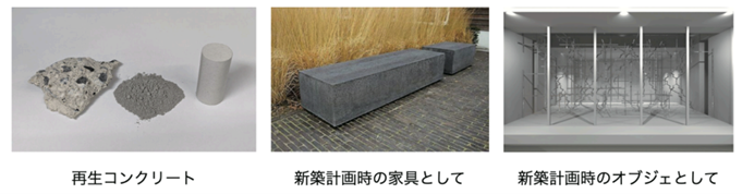 ・再生コンクリートの新築建物への利用(協力:東京大学 生産技術研究所「建築物の総合的保存保全に関する研究グループ」、武蔵野美術大学 ソーシャルクリエイティブ研究所)