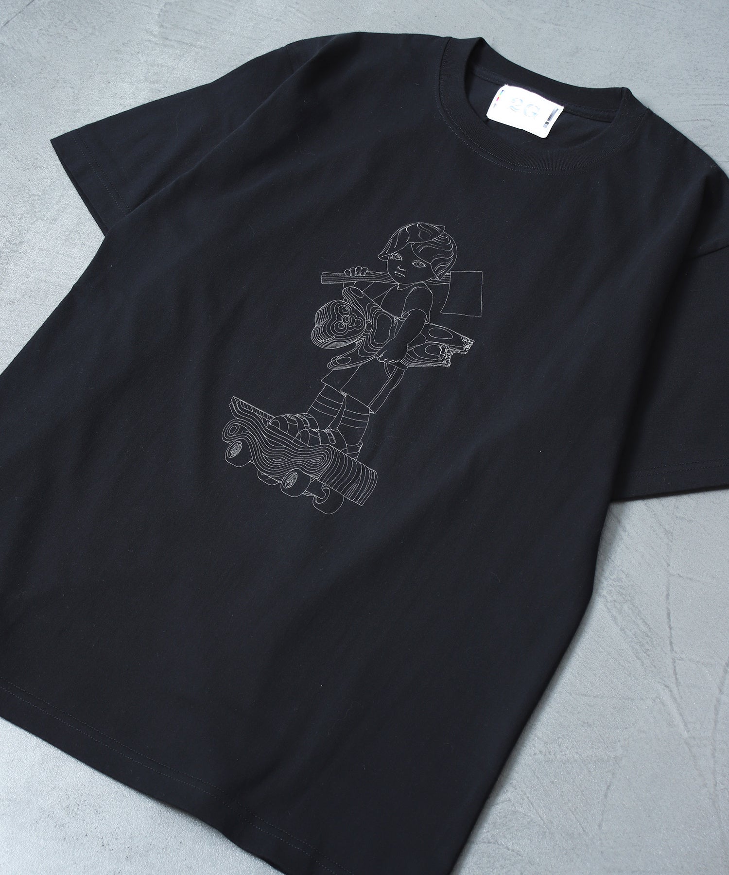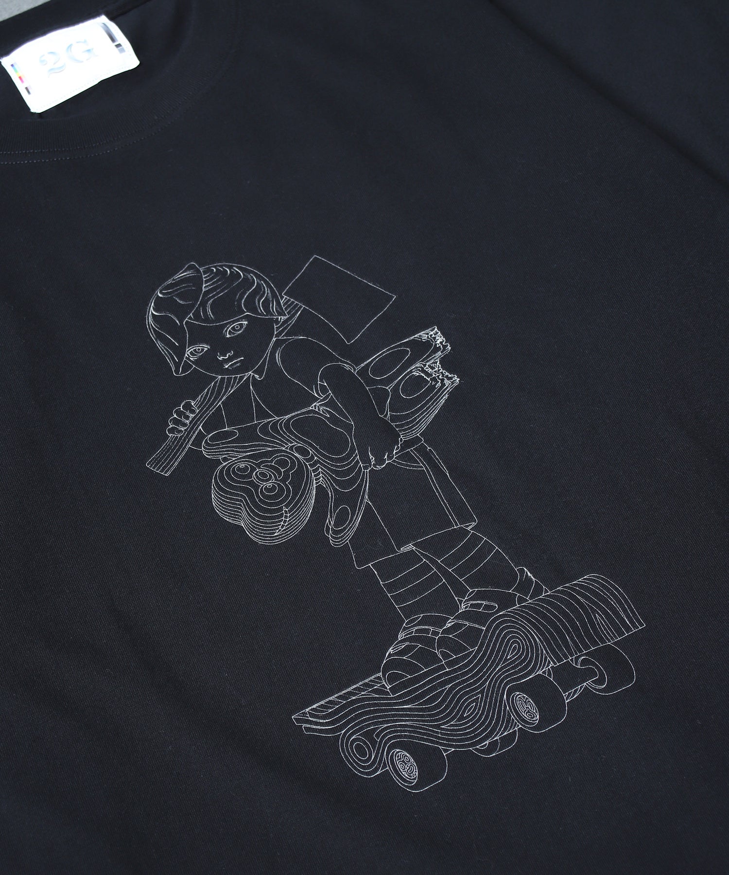 POP UP期間中は「Trespassers」を落とし込んだ限定Tシャツや、コラボレーションを記念して作成されたキャラクターのピンズの販売に加えて、「2G POP UP STUDIO」店舗へご来店いただいたお客様に限り、プリント・彫刻作品の事前予約を承ります。