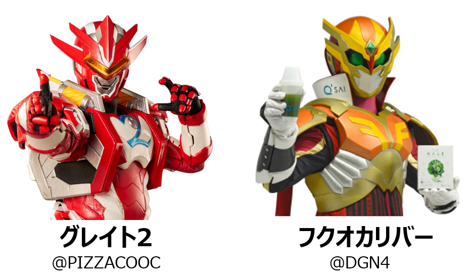 撮ヒーロー作品です。イワタダイナース社は「グレイト 2」、キューサイ社は「フクオカリバ