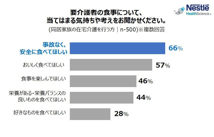 「誤嚥(ごえん)」などのリスクを懸念し、約6割が「事故なく、安全な食事を」と回答