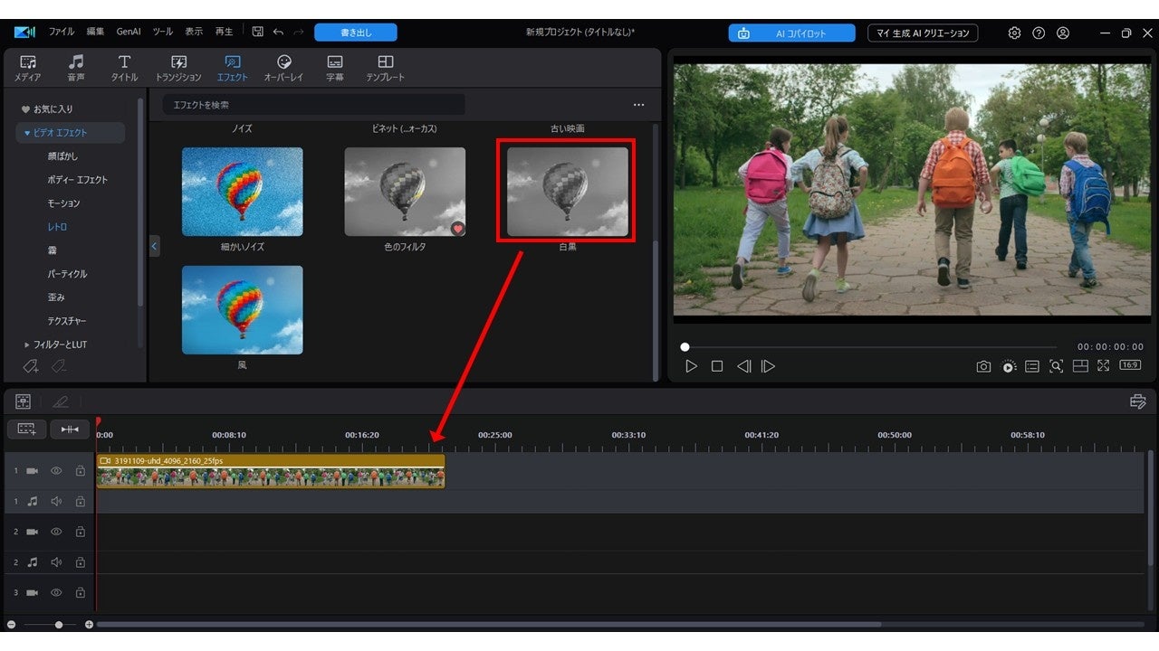 AI による自動認識機能により、動画内の人物や物にピンポイントでエフェクトを適用できる機能が強化されました。この機能により、動画クリップ内の一部分にだけエフェクトを適用することができます。
