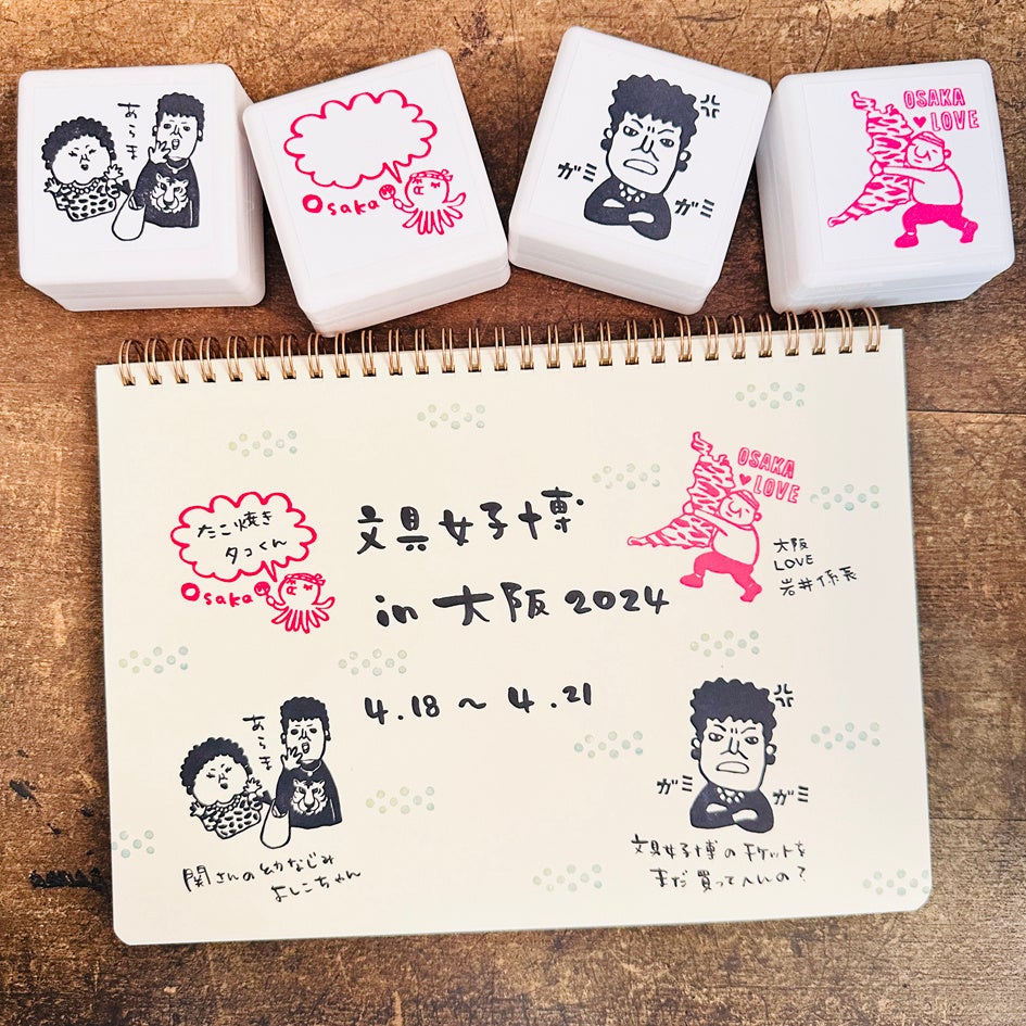 今回のシヤチハタブースでは、自分だけのオリジナルスタンプが作れる「OSMO(オスモ)」にRiraRiraはんこ®コラボフレーム・大阪バージョンと、初コラボとなる人気のクリエイティブ集団クリエイターズラッシュ!!のイラスト、文字デザインを得意とするクリエイター集団レトロ文字部による大阪にちなんだ方言をご用意。また、日本の伝統色から選定したインキ色でスタンプアートにおすすめのスタンプパッド「いろもよう」のミニサイズ版「いろもよう わらべ」の中から、自分の好きな6色を選んでオリジナルボックスに入れる「いろもよう わらべ紙箱セット」を数量限定で販売します。ここでしか出会えない商品を数多くご用意しておりますので、パワーアップした「文具女子博in 大阪2024」で出会える“お気に入りの文具”を探しにぜひお越しください。