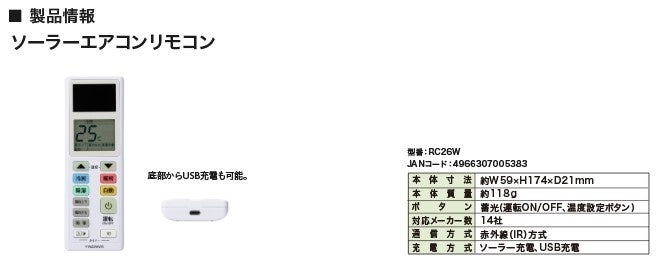 インテリア家電製品および、PCサプライ品の製造販売を手掛ける株式会社ヤザワコーポレーションは、ソーラーエアコンリモコンを4月中旬頃に発売いたします。