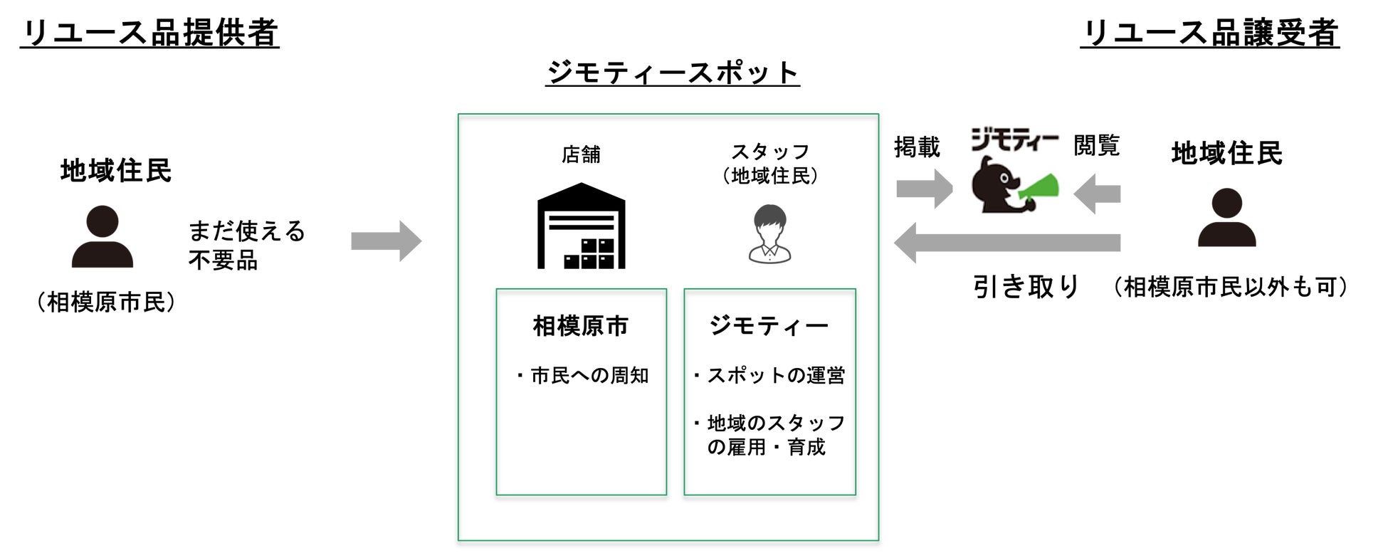 相模原市に初出店!不要品を地域で譲り合う官民連携のリユース拠点「ジモティースポット相模原」4/10(木)オープン