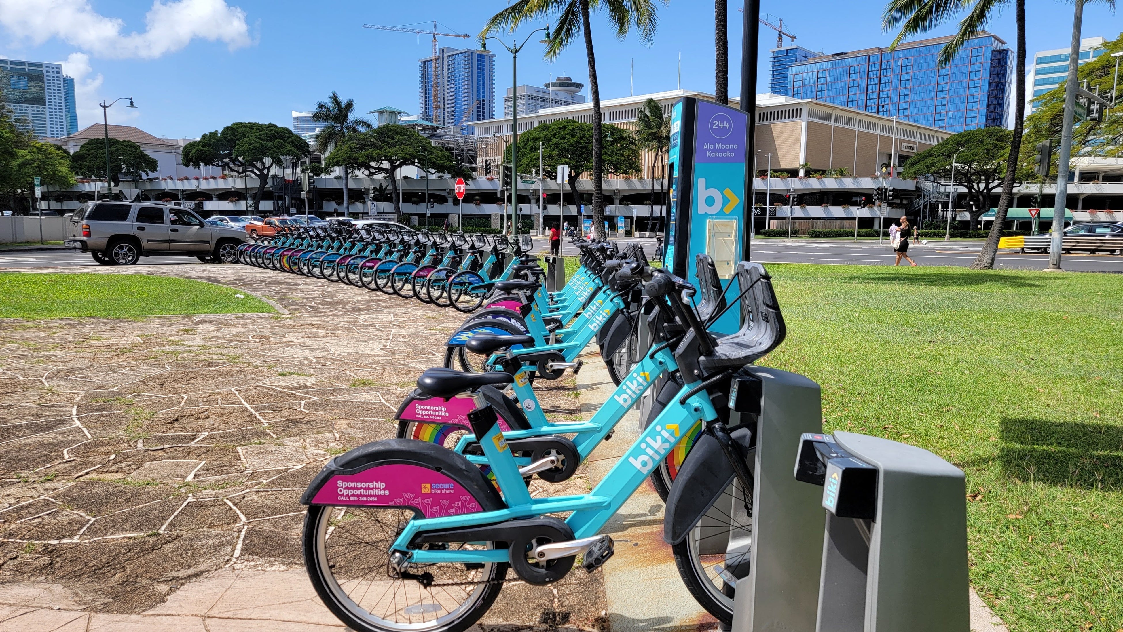 「Biki(ビキ)」とは、ハワイ・ホノルルが抱える慢性的な交通渋滞の緩和と排ガス削減などの環境保全を目的に2017年に導入された、自転車レンタルサービスです。ホノルル市内ダウンタウンからダイヤモンドヘッドまでの約20kmの間におよそ130カ所のステーション・1,300台の自転車があり、好きな場所で乗り降りすることが可能です。よりローカルな観光ができることから、2018年には年間100万回の利用を超えた人気のサービスです。また近年はSDGsの観点や新型コロナウイルス感染症の影響から、以前にも増して需要が高まっています。