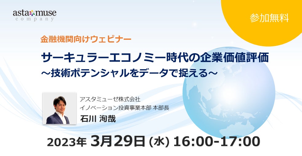 「サーキュラーエコノミー時代の企業価値評価~技術ポテンシャルをデータで捉える~」無料ウェビナー開催!3月29日16時~