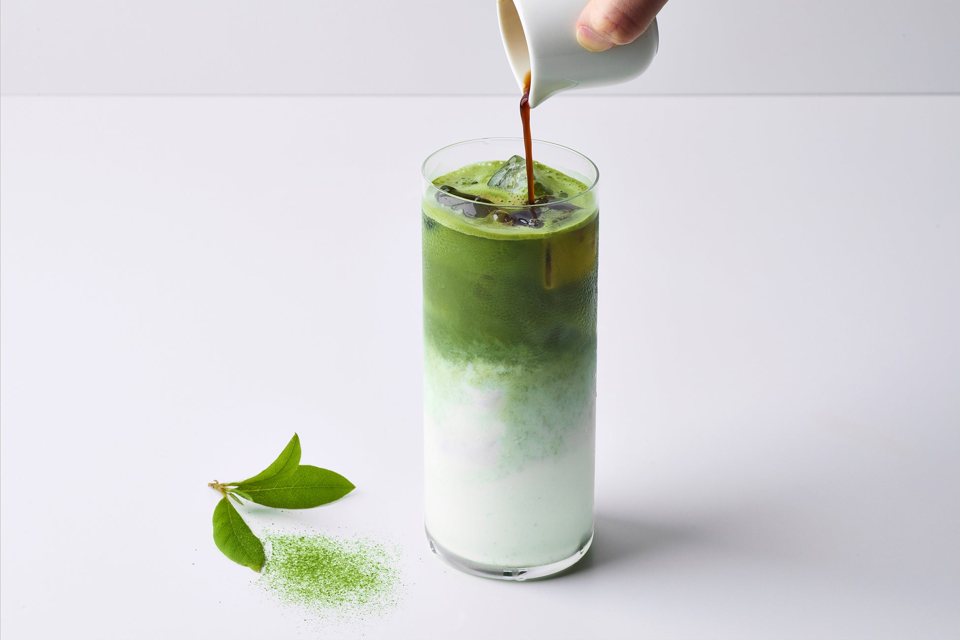 濃いめに点てた香りの高い抹茶のラテに、深い味わいの黒蜜エスプレッソをお好みで注いで、味の変化をお楽しみいただけます。