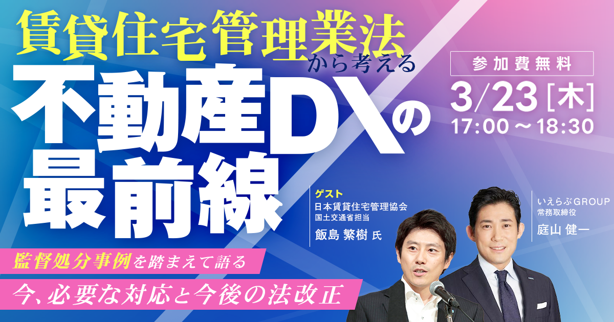 3/23(木)【初の監督処分を踏まえて語る】いえらぶ主催、賃貸住宅管理業法と不動産DXセミナーの詳細が決定