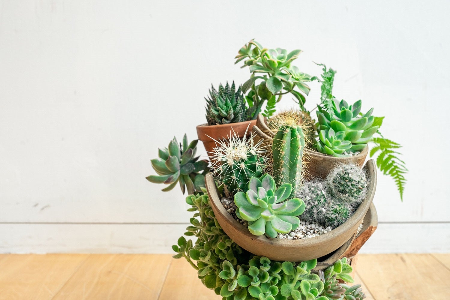 ワークショップでは植木鉢を割るところからスタート!フラワーアレンジメントはこういうモノだというイメージを捨て去り、割れた鉢や自宅に眠っている皿やカップなどを組み合わせ、仕上げていきます。ストレス発散や気分転換したい方にもおすすめの講座です。
