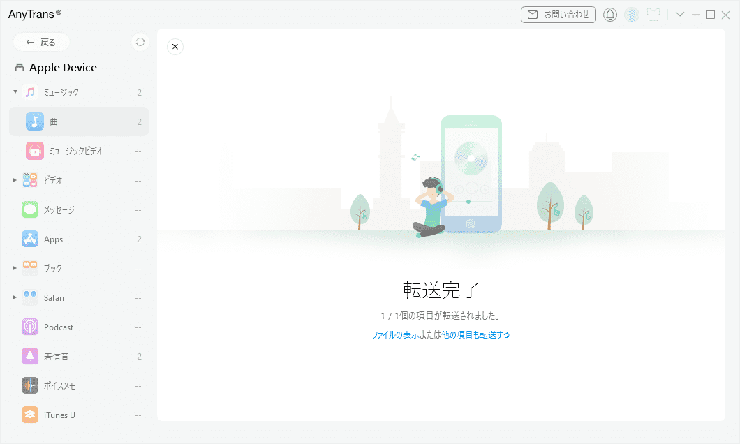 AnyTransはパソコンをデータ転送の架け橋になって、ケーブル一本で、写真からアプリ、圧縮ファイルまでおよび27種類のiOSデータを全面的に管理でき、自由に一括か選択してインポートまたはエクスポートできます。専門知識が不要で、数クリックだけで気軽にデータをiPhoneや、iPad、iPod、iTunes、iCloud、パソコン間で転送する。