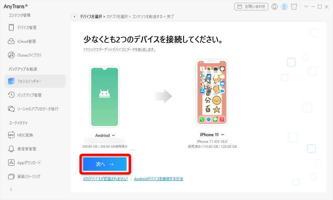 Step3.デバイスを検出してから、「次へ」をクリックします。