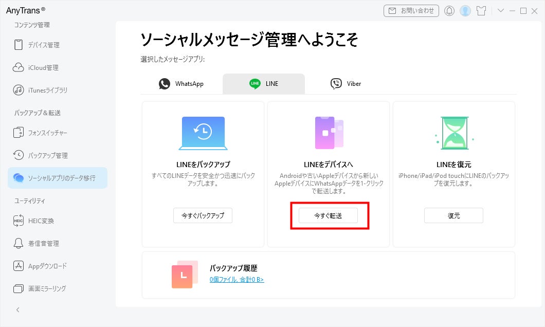 Step2.「LINEをデバイスへ」で、「今すぐ転送」をクリックします。