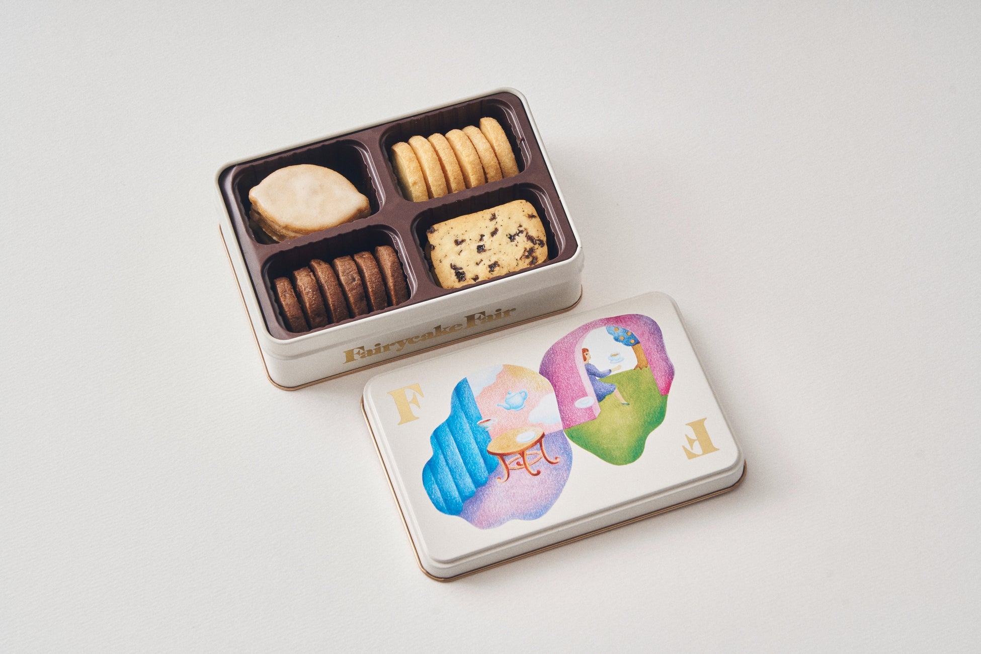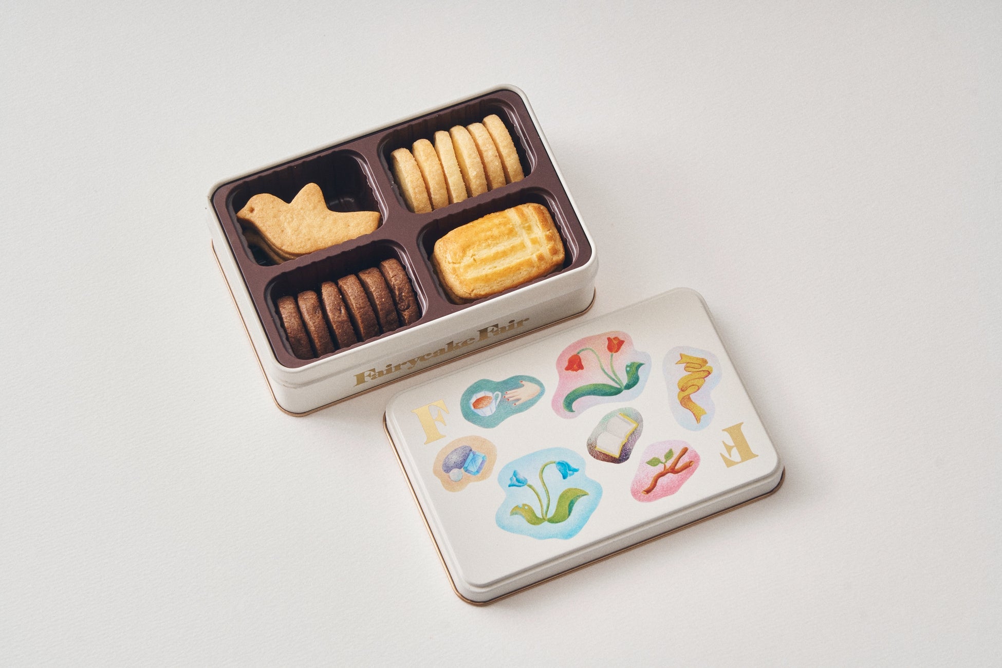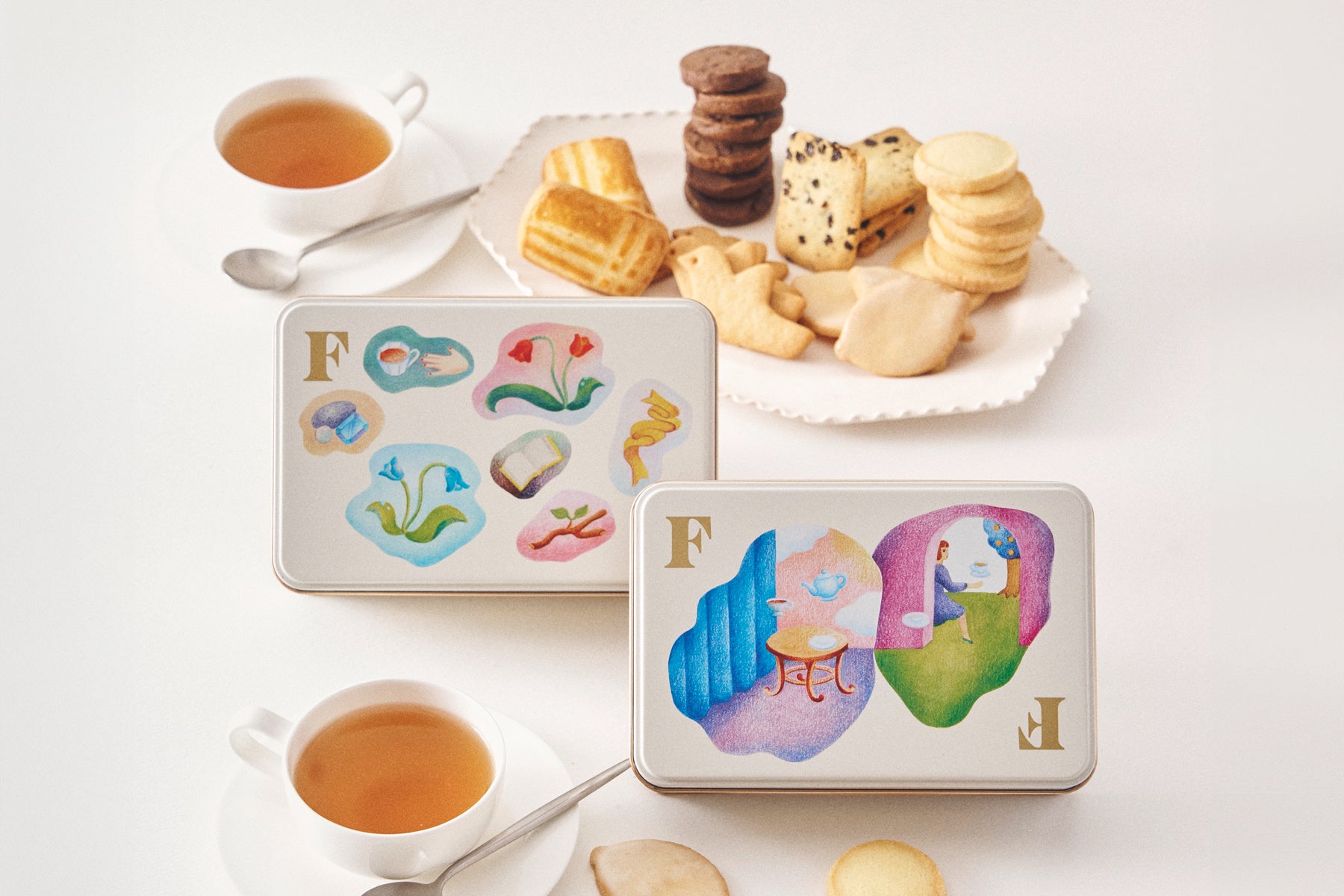 『FF biscuits can』は2種類あります。かわいいハト型の発酵バタービスケットや、アールグレイ香るリッチなビスケットなど、コンセプトに合わせたこだわりのビスケットを4種類詰め合わせています。家族で過ごす温かなひとときも、友だちとおしゃべりする時も、自分だけの静かな時間も。それぞれの瞬間にぴったりな味わいをご提供します。