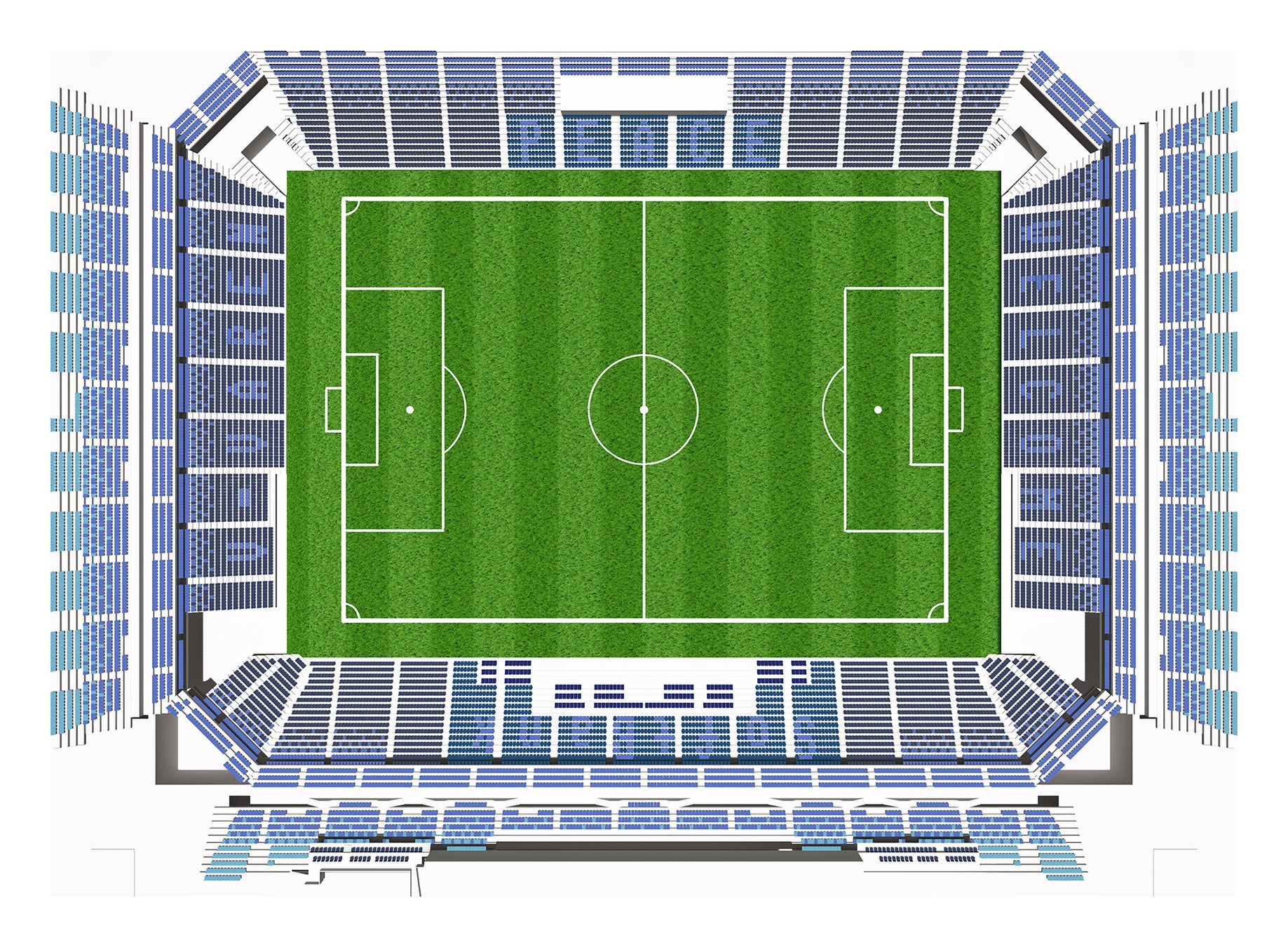 長い歴史の中で多様な世界の文化を受け入れてきた長崎の海のディープブルーと、平和を祈念し世界に発信する長崎の空のスカイブルーをグラデーションで配色。長崎の皆様に愛され、長崎を象徴し、また長崎の想いを広げていくスタジアムを目指した座席カラーデザイン。各座席は、ホームゴール裏は本スタジアムをホームスタジアムとするV・ファーレン長崎のクラブ名「V-VAREN」、アウェイゴール裏はビジターの皆様を歓迎する「WELCOME」、バックスタンド(ホテル側)は平和を発信するスタジアムとしてスタジアム名にもネーミングされた「PEACE」、メインスタンド(浦上川側)はネーミングライツスポンサー様の「SoftBank」の文字を刻みます。