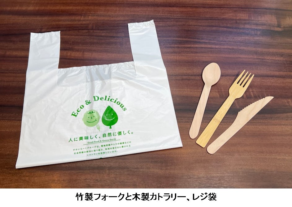 また、すかいらーくグループ約2,700店舗の持ち帰り・宅配用のカトラリー(フォーク)について、耐久性向上を目的に 木製から竹製に順次変更いたします。