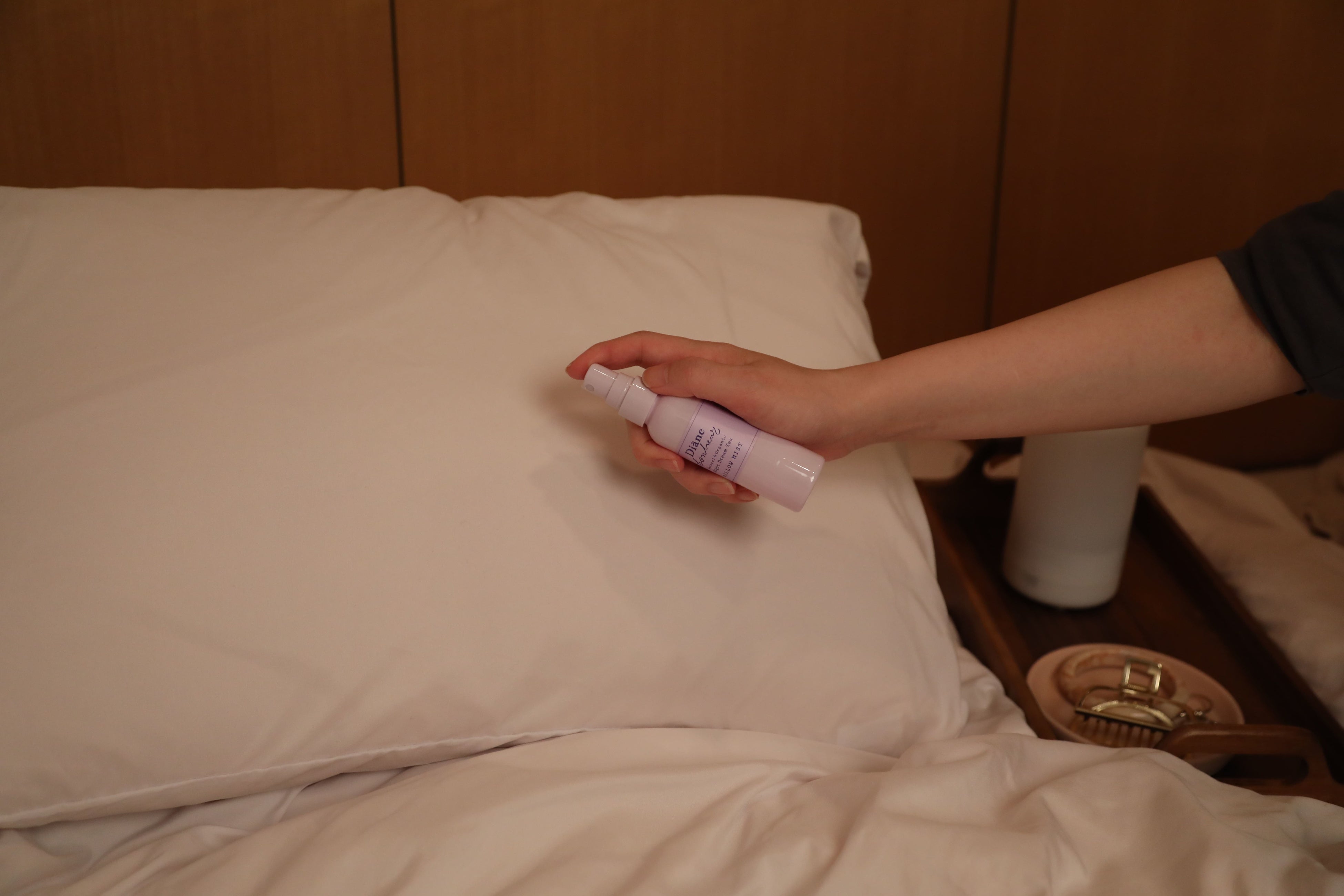 就寝前、ベッドルームにひとふきで心地よい睡眠空間を演出