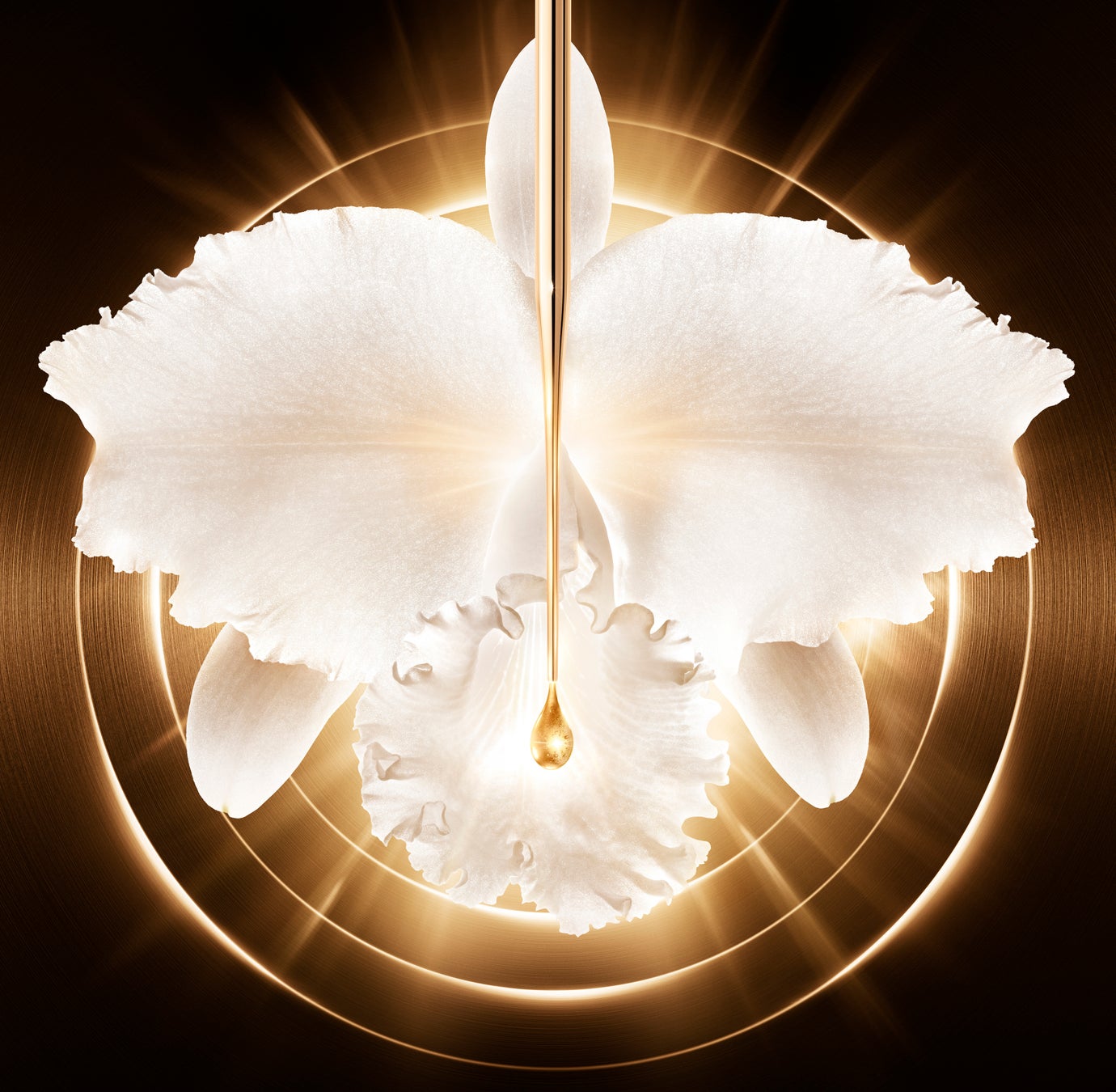ゲランは、科学的発見とオーキッド(蘭)に関する深い知識をもとに、「光の匠」ともいうべき蘭に辿り着きました。それは、3万種の中から選び抜かれたヒマラヤ地方の固有種、ゴールドノビレオーキッドです。この発見によって、ゴールドクォンタムテクノロジーが誕生し、〈オーキデ アンペリアル ゴールドノビレ〉シリーズの象徴となりました。