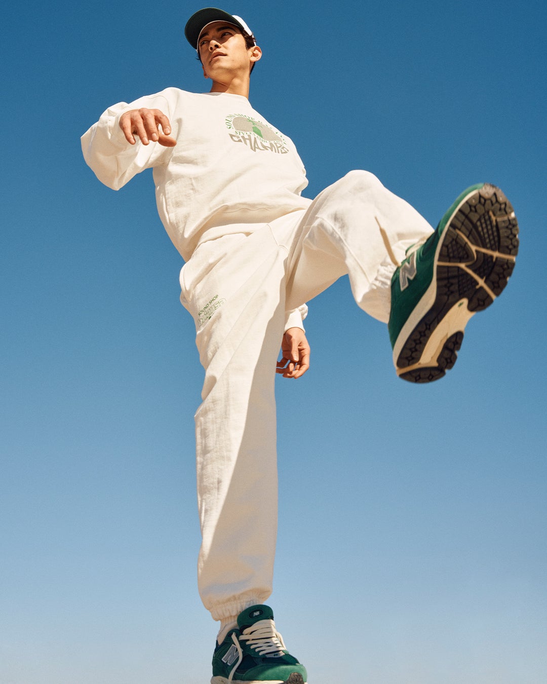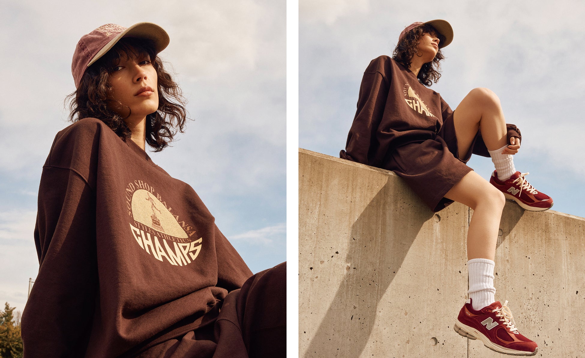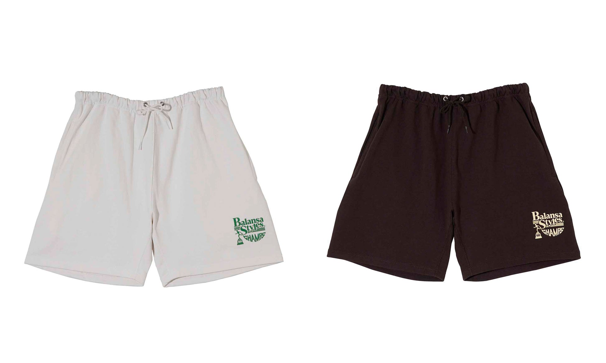 今回のコラボレーションでは、本コラボレーションのために制作された両ブランドのダブルネームロゴをあしらったクールネックスウェット、スウェットパンツ、スウェットショートパンツと刺繡キャップをラインナップ。