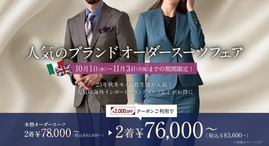 【25年秋モノ新作生地も対象!人気のブランドオーダースーツフェア開催中 】