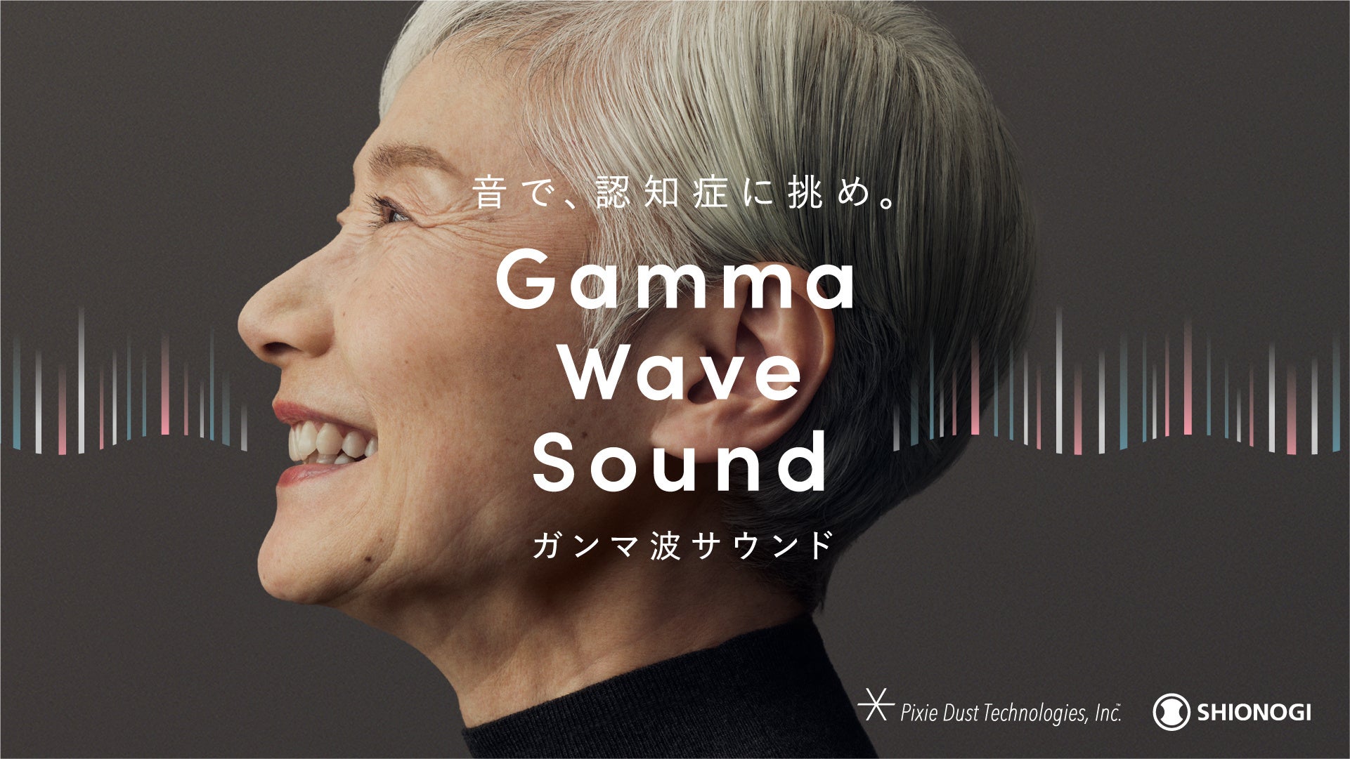一方、これまでの研究で用いられた40Hz周期音は音声情報などを含めることの出来ない単調なパルス音であり、毎日長い時間聞き続けるには負担が大きく、日常生活の中に取り込みづらい可能性がありました。PxDTと塩野義製薬では、この課題を解決するために、テレビやラジオなどの音をリアルタイムに40Hz周期の音に変調することができるガンマ波変調技術を用いた「ガンマ波サウンド」を共同で開発しています。また、ガンマ波変調技術による40Hz変調音においてもヒト脳内でのガンマ波が惹起されることを確認しています。