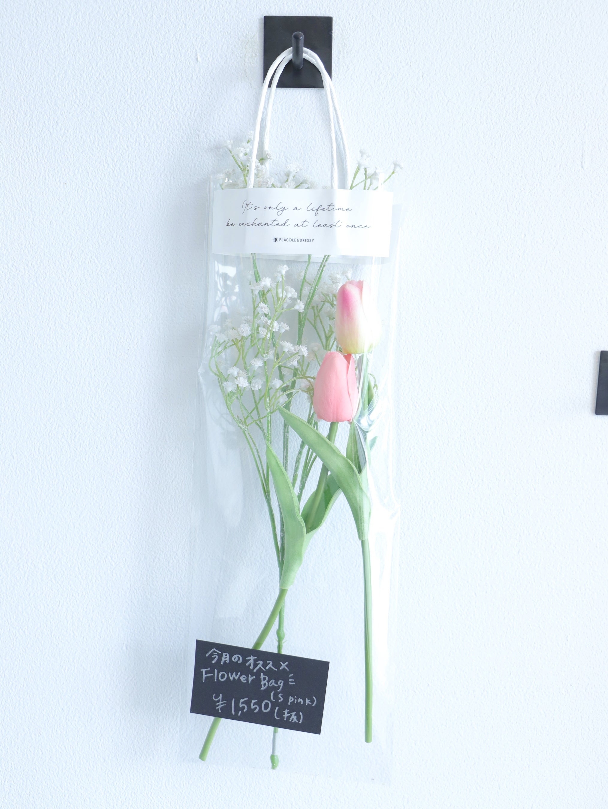 ・かすみ草 1本 ・チューリップ(ピンク)2本 ・フラワーバッグS付