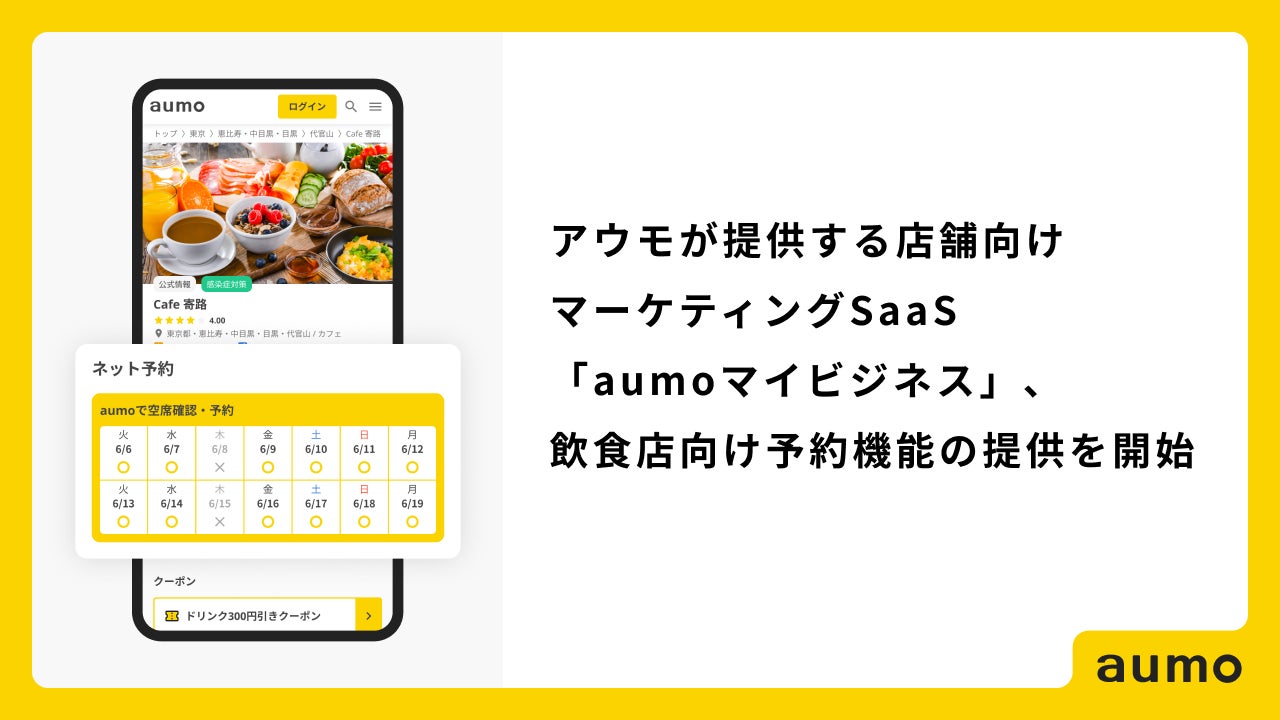 アウモが提供する店舗向けマーケティングSaaS「aumoマイビジネス」、飲食店向け予約機能の提供を開始